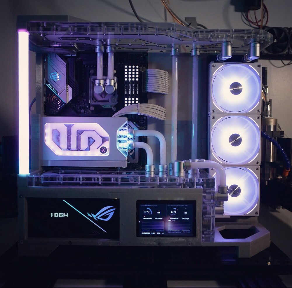 This is a fully custom 3d printed case along with 3 custom distroplates that I had manufactured myself. It is a combination of putting what I had learn regarding cnc/3d printers. The goal is to inspire others to do something similar or even beyond of what I'll be presenting today. It took a lot of hours (∼ 600hrs) due to testing and learning both of my machines during the process of turning this build into reality.