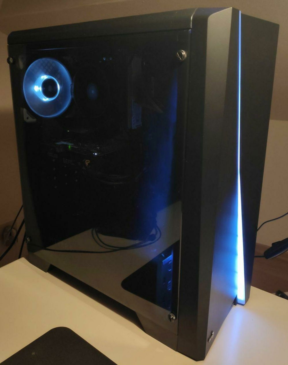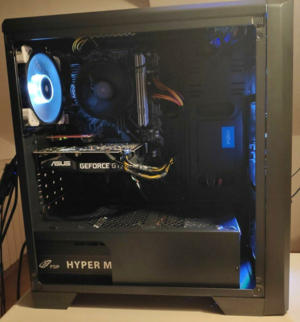 Ryzen 5 2600 (bought used) with stock wraith stealth cooler Gigabyte b450m s2h (bundled with cpu, used) Asus phoenix gtx 1650 super Fsp hyper m 600w psu 32 gb white crucial 3000mhz ram (2 x dual rank 16gb sticks) 240gb crucial sata ssd 1tb + 500gb wd caviar blue hard drives (I already had all the storage I used) Aerocool cylon case 1 usb 3.0 pciex1 expansion card (I had it lying around) 1 120mm corsair ml120pro fan on the back for air exhaust
