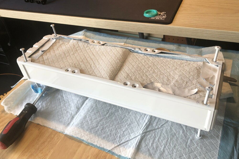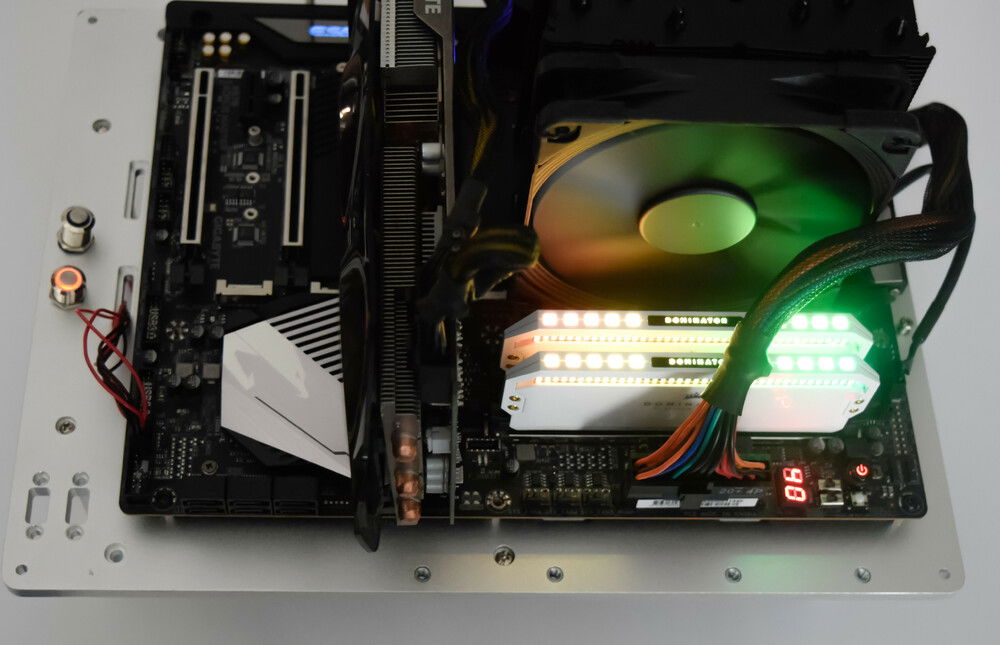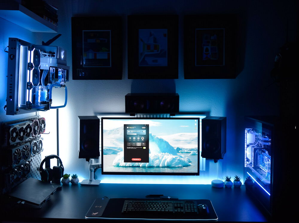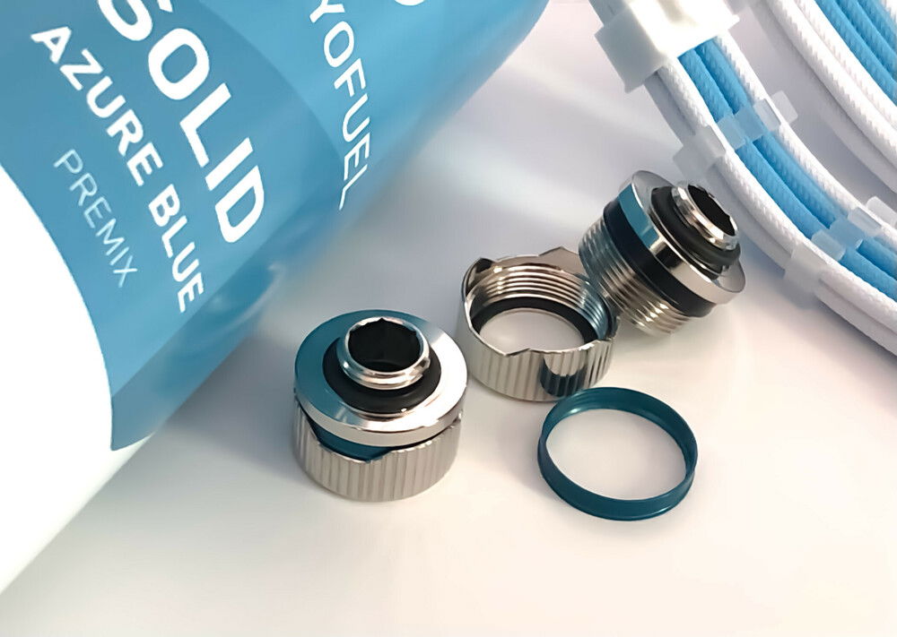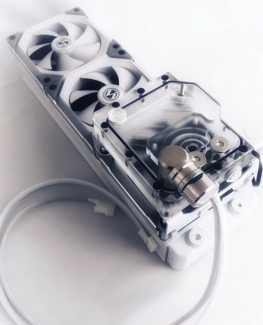 I wanted to do something different for my workstation build, as well as conserve my desk space. The name says everything about the theme. To keep the theme throughout the build, I painted the rad as well as the FLT 120 trim white. To break the monotony of the all-white theme, I filled the loop with EK Azure Blue with matching PSU cables. For the mounting space, I wanted the rear IO to face the backwall and the front IO to face the front, so inverted the Core P3. I decided to not use the long metal pipes and the tempered glass to make this a true open air, wall mounted build.