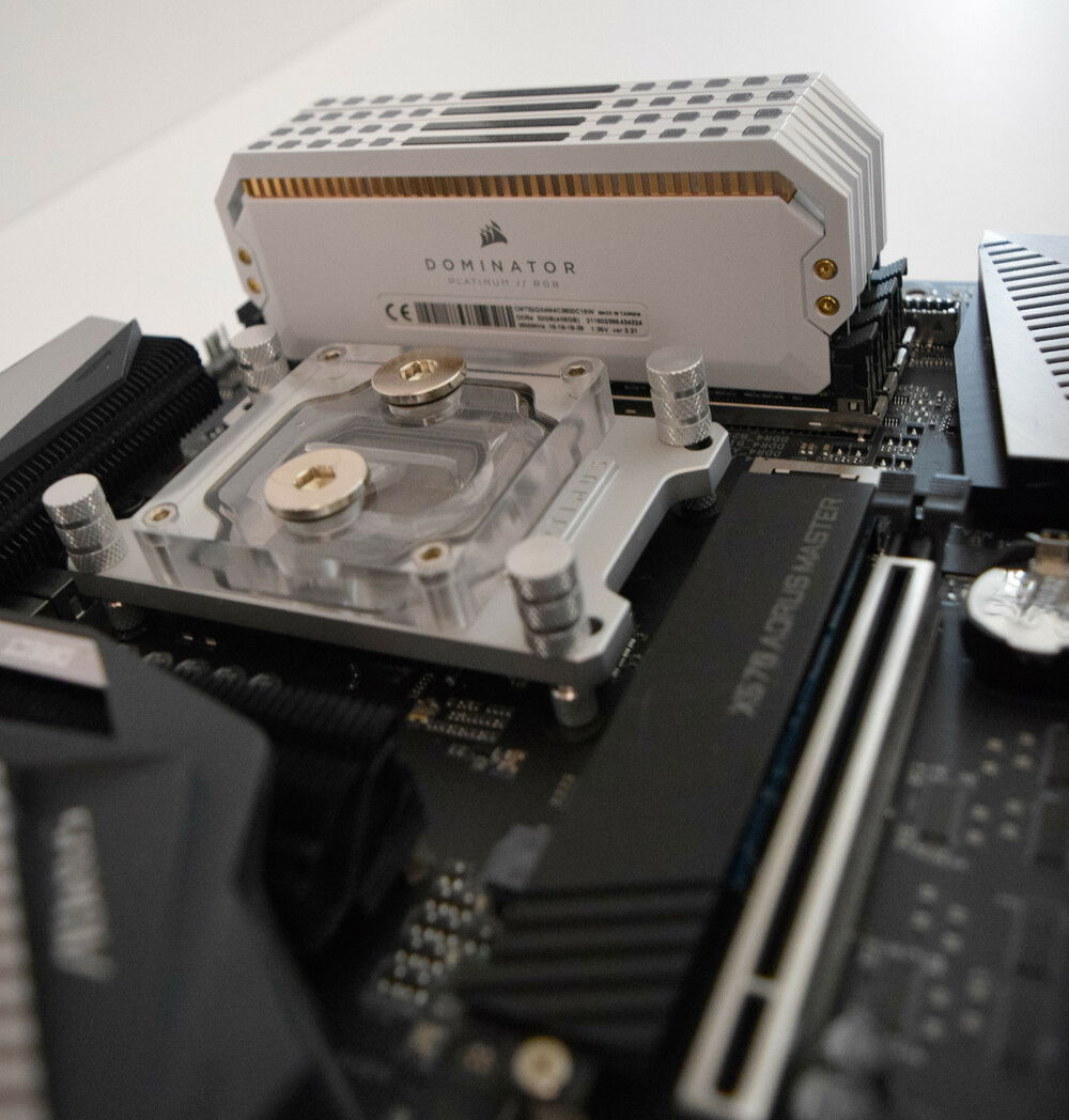 The GPU and Bykski block are oriented upside down and have been performing well with no issues. Prior, some have told me the idea of mounting the GPU block upside down would cause issues, but so far so good. I set a custom fan curve as well as modified pump speed for a whisper quiet operation. The one detail I forgot to tend to was covering up the upside down Thermaltake logo :). For future updates, I plan to either repaint the Core P3 case white or skin it with some textured white vinyl wrap and fabricate custom motherboard armor (in white and azure blue trim) to bring the theme even more together. I previously had a 3900X in this build, my friend subsequently sold me his 5950X for a steal. I have also added benchmark comparisons vs the 3900X.