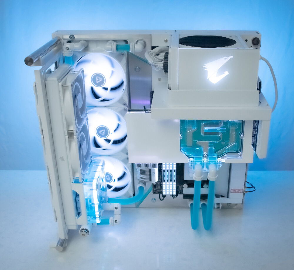 I’ve upgraded ChillyRig 3x but over the last year, I encountered issues that required more than routine annual maintenance such as the solid component separating from the EK Azure Blue Solid coolant. The solid component got into the GPU block and everywhere else. The Lian Li Unifans worked great until a few months ago, when I started to hear high-pitched whine that got louder over time.