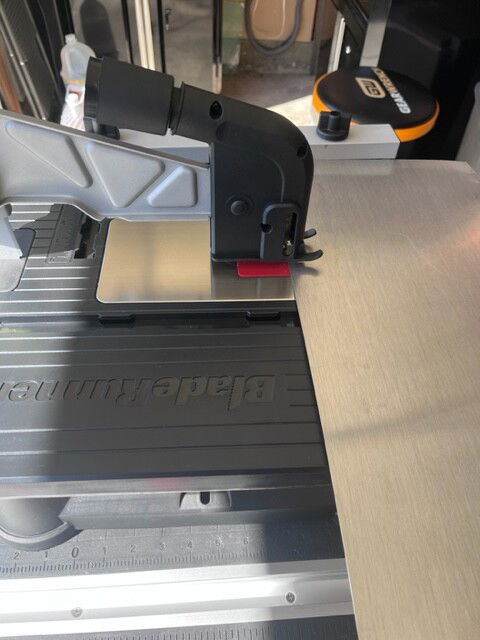 I framed the Core P3 Pro with aluminum trim I designed, cut, and finished. I acquired a 30cm x 30cm of 13 gauge aluminum sheeting for the trim. I used my table saw with an aluminium blade to cut out the design. Afterwards, I sanded and rounded the edges to prevent them from cutting my fingers. I then drilled and tapped M5 sizes holes on the aluminum trim and case to allow me to fasten with M5 flat head screws and blue washers for a custom look. Afterwards, I sanded the aluminium trim with 220 grit sand paper for a brushed finished.