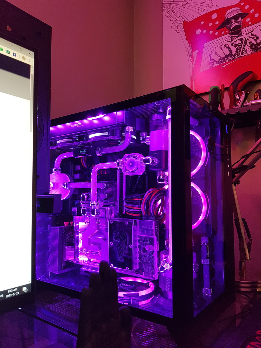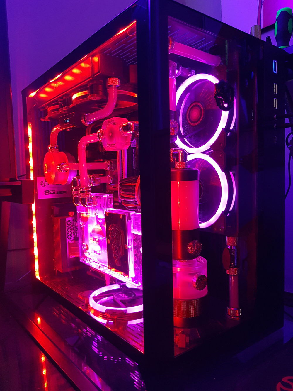 I love hardline water cooling and I think I got this thing pretty much exactly the way I want it ... aside from couple RGB accents, I have to install on the water blocks and a few 3d prints I still have to paint, finish and attach to this build its pretty much complete.. I have done tons of modding in the past and I love to do things like put lcd touchscreens on front pannels and unique mods like the snowblind case mod which is my next big endevour....once I save up the loonies for some newer hardware I will show some stuff from that build....its an old oscilloscope I am going to attempt the snowblind mod on.... I also do 3d printing on my ender 3 3d printer and I like to do pc mod related printing ....the vertical GPU mount is a custom 3d print ...also i have like 5-6 other ones im going to install soon....anywho im going to post some better photos when i get the chance....thanks for taking time to check my build out and best of luck friends