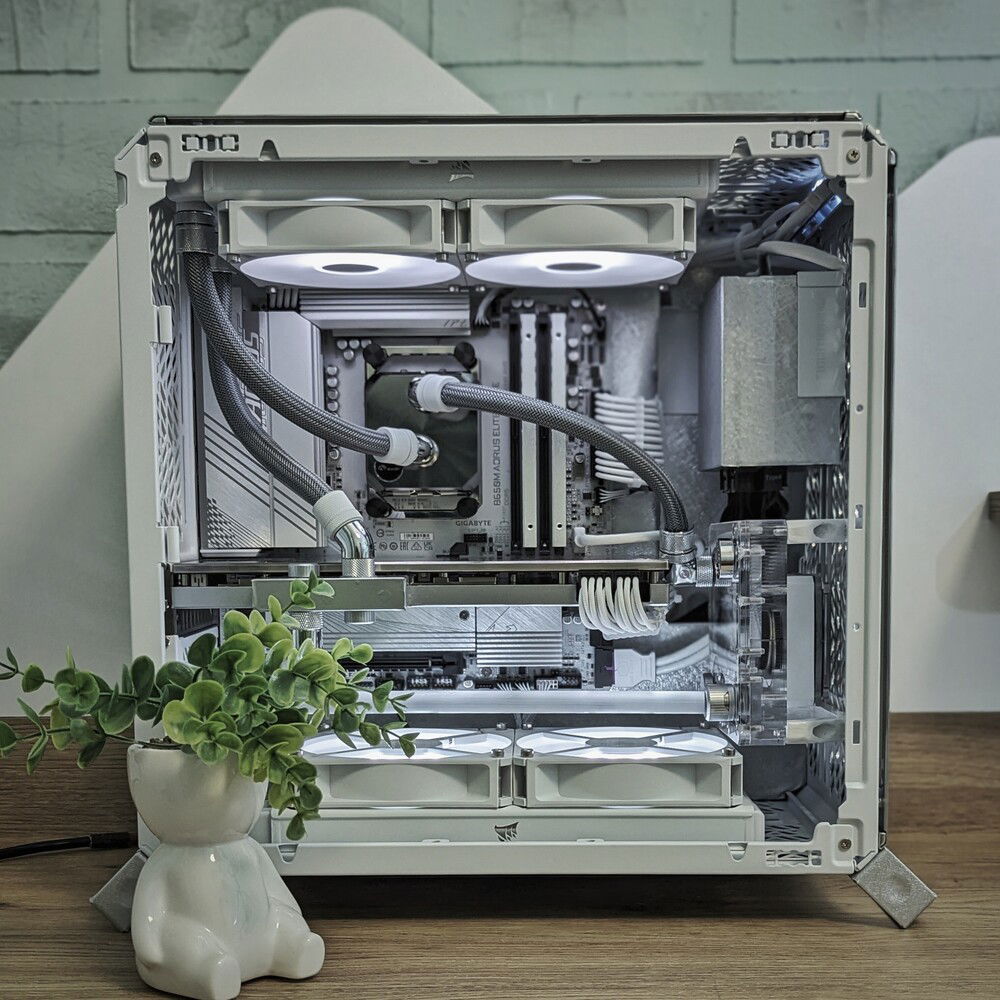 This is the Chromemaster Project in Coolermaster's Qube 500 case . A white-chrome coloured build!