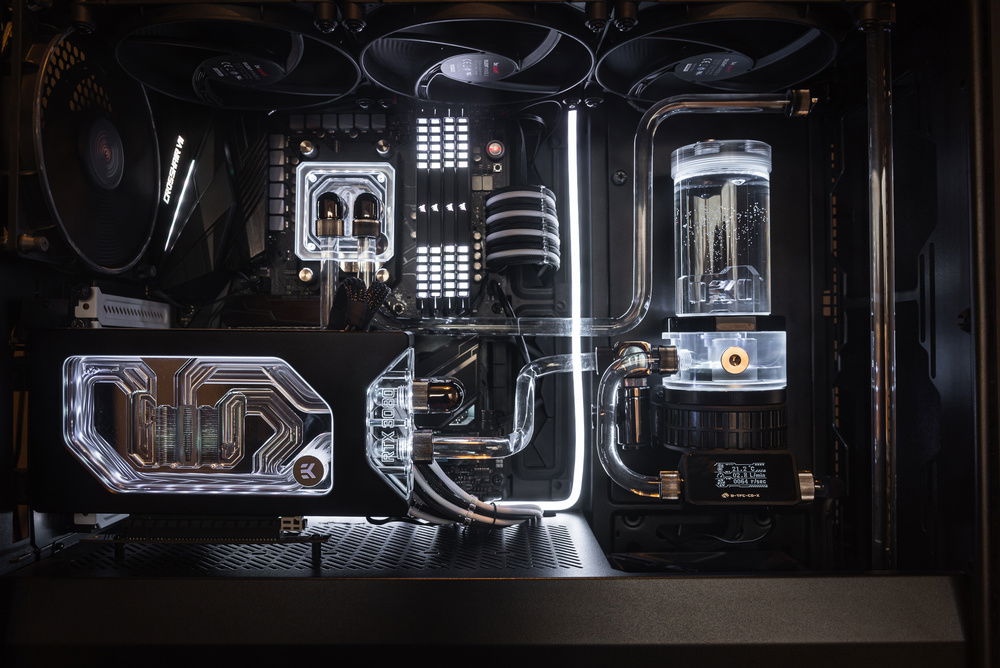 Have a 280mm rad in the basement and a 420mm slim rad in the roof, and added a Bykski digital flow meter mostly becuase I thought it looked cool