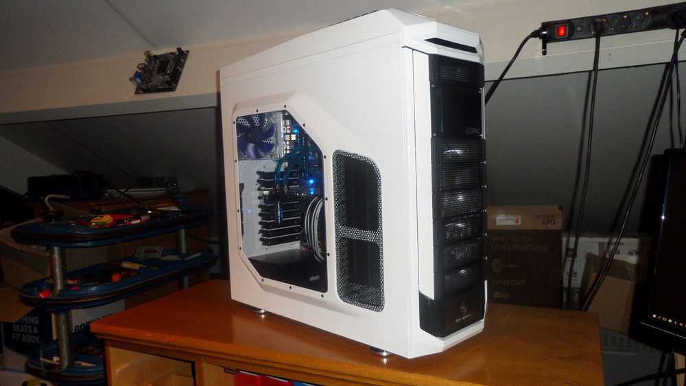 Build this PC with a very big motherboard named the MSi Big Bang Xpower II, i used it with an Intel i7 3820 and an Enginering Sample wich someone gave to me as a gift. The watercooling stuff was from Magicool except the pump/reservoir that was from XSPC. The only thing i regret with this build was the OD of the soft tubing it was only 10 mm.
