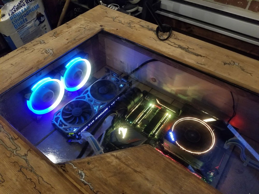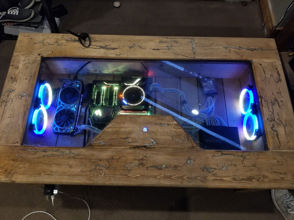 This build has been a work in progress for quite a while now and probably will continue to be. The inspiration for this came from wanting to merge two of my favorite hobbies, woodworking and computers. Im also a controller gamer with horrible eyesight so gaming from the couch with a 60" tv and a bluetooth xbox controller was a must. I eventually want to incorporate a hardline watercooling loop for cpu and gpu but that may not happen for a while.