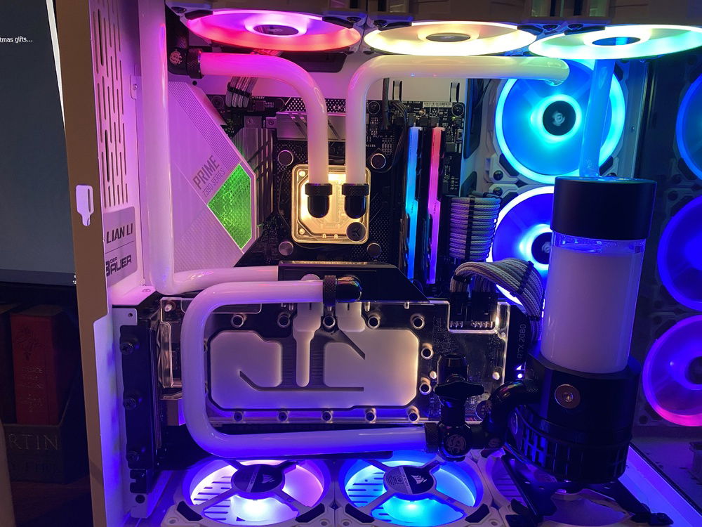 I built this in January using the same parts but it was air cooled. I then made the decision to watercool it because why not, minor performance improvements for a lot more money, sounds good to me. Most of the parts come from my local Microcenter, they were having a sale on 8700K and there was an open box 2080. I can usually get 100+ frames on 1440p on ultra settings. I mostly play PUBG and Wow classic in my free time but also use it for web development.