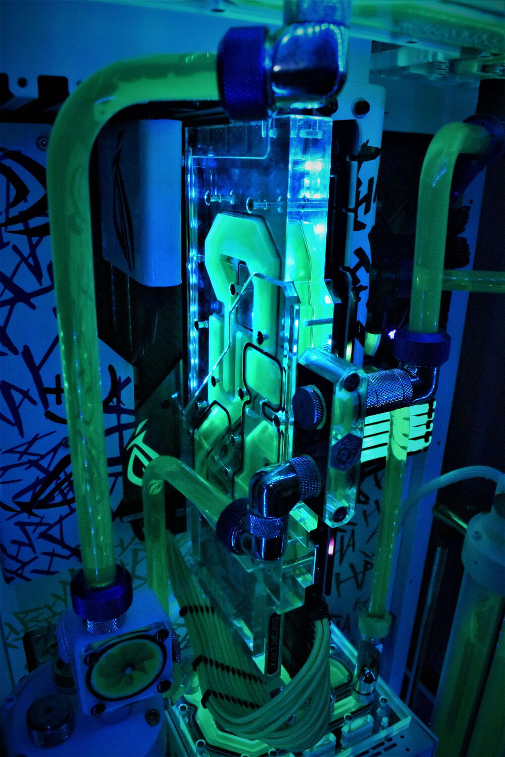 I had to gut basically EVERYTHING that was bolted inside the case from thermaltake to get the look i wanted. everything is mounted to a custom cut/made polycarbonate motherboard tray/wall separating the front from the guts in the back