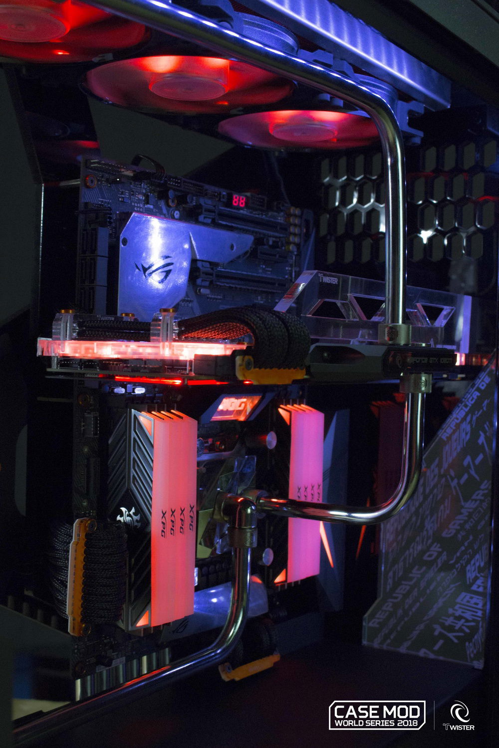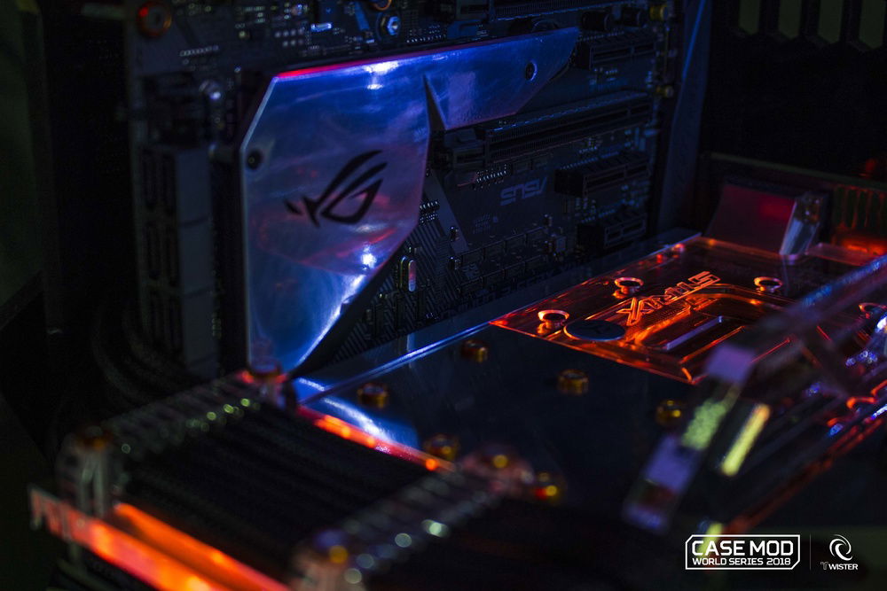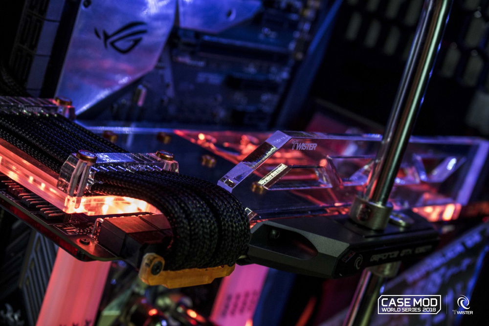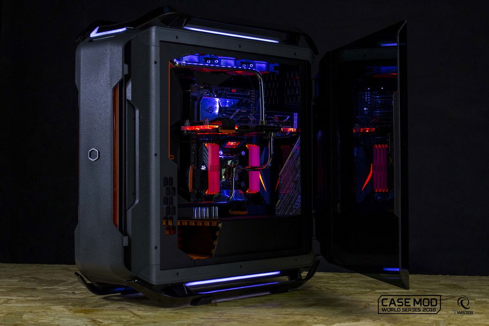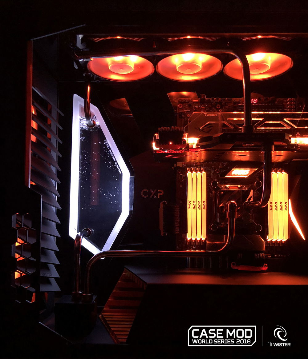 Daniel Bolognesi's Concept CXP take advantage of all the versatility of the new C700p to upset the standards and compete in the Case Mod World Series 2018. Redesigned geometries, repositioned components for a unique and captivating layout and a completely reconstructed frame with the main components of a concept studied with futuristic and extreme design. The custom reservoir fits perfectly in a geometric context outside the box, as well as the front ventilation grid and a custom paint for a unique aesthetic touch.