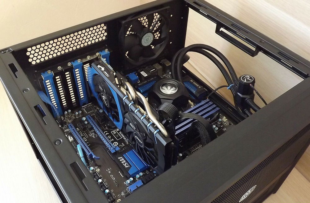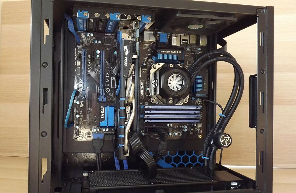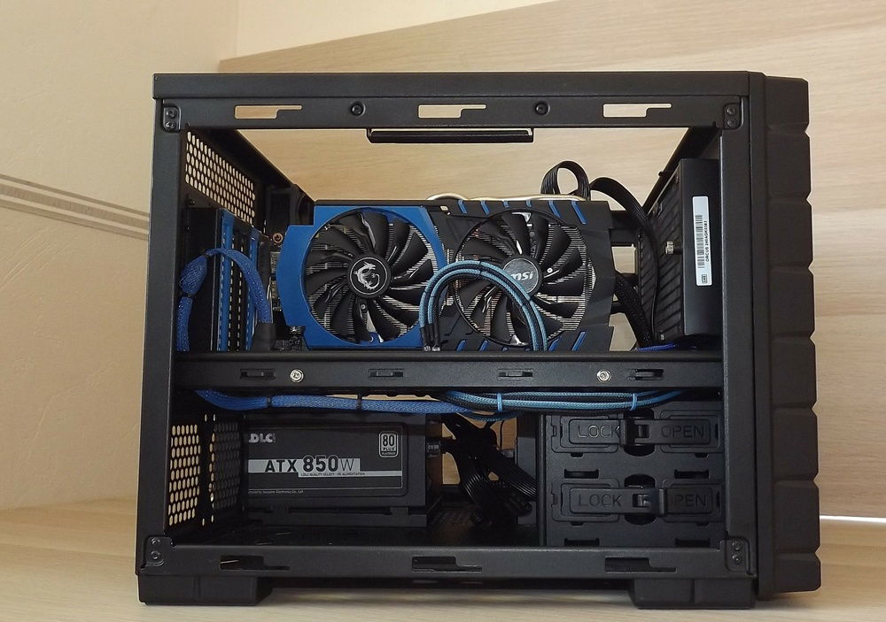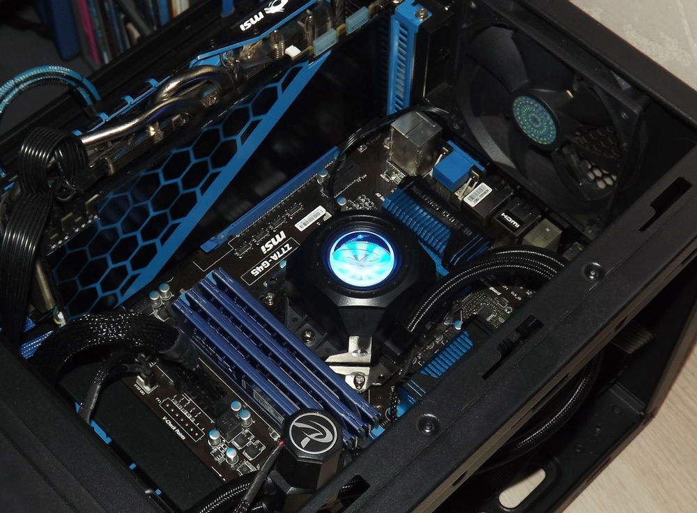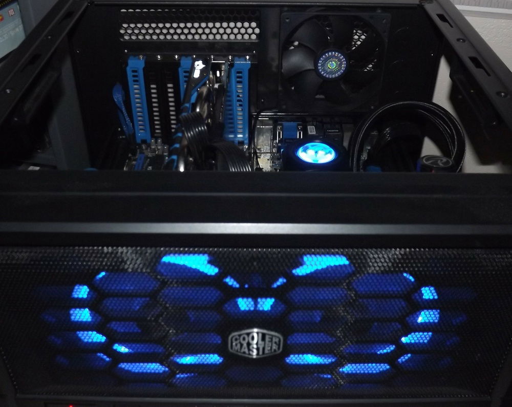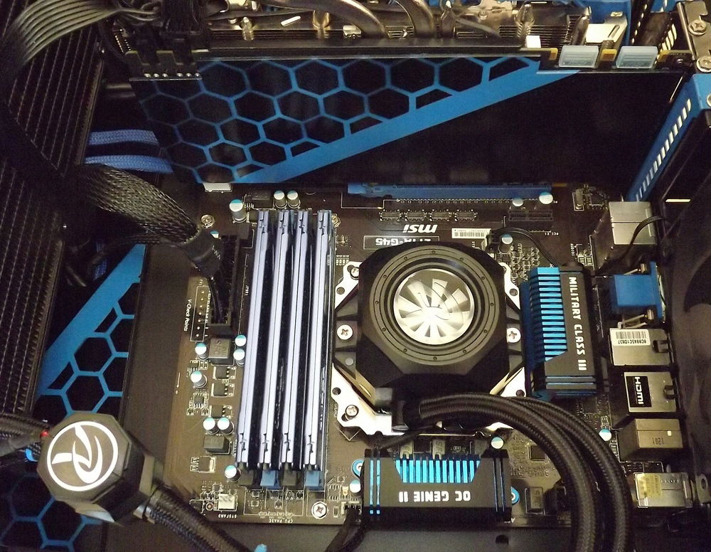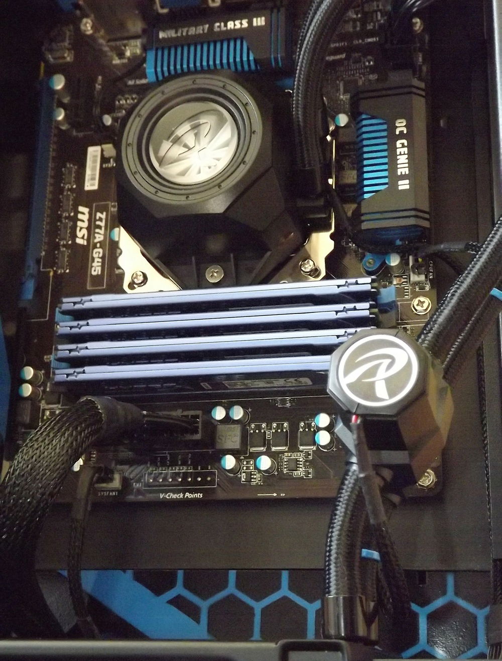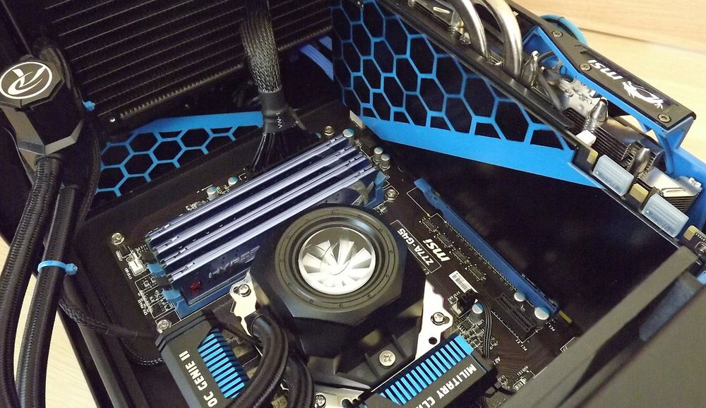 My modifications made: - Painting in blue hull of the GTX970, - Homemade of a back plate, and painting - Homemade of a cable cover, and painting - Sleeving of Case's cable