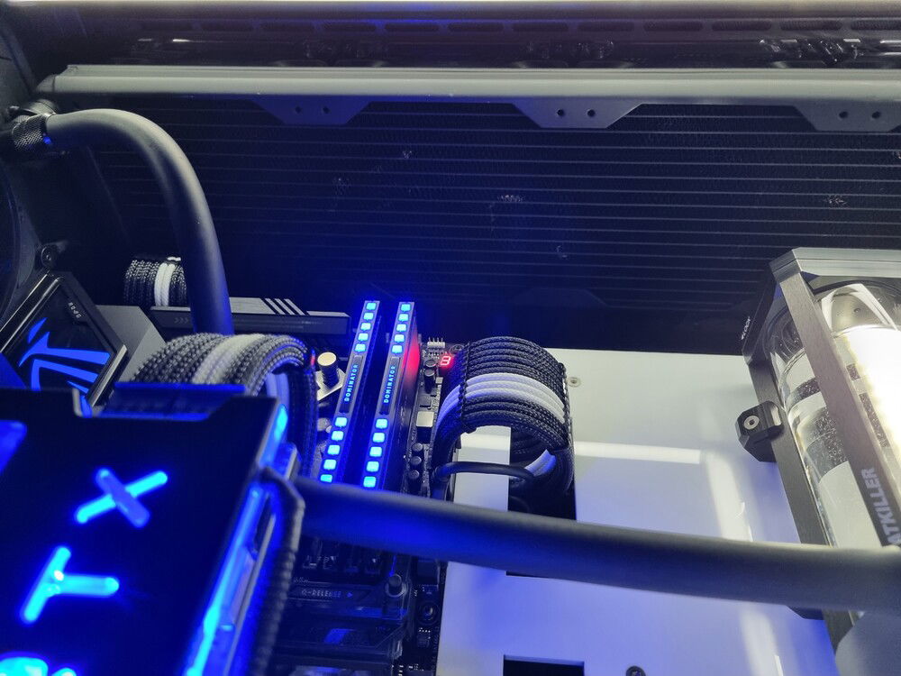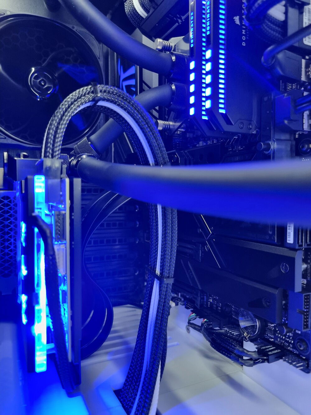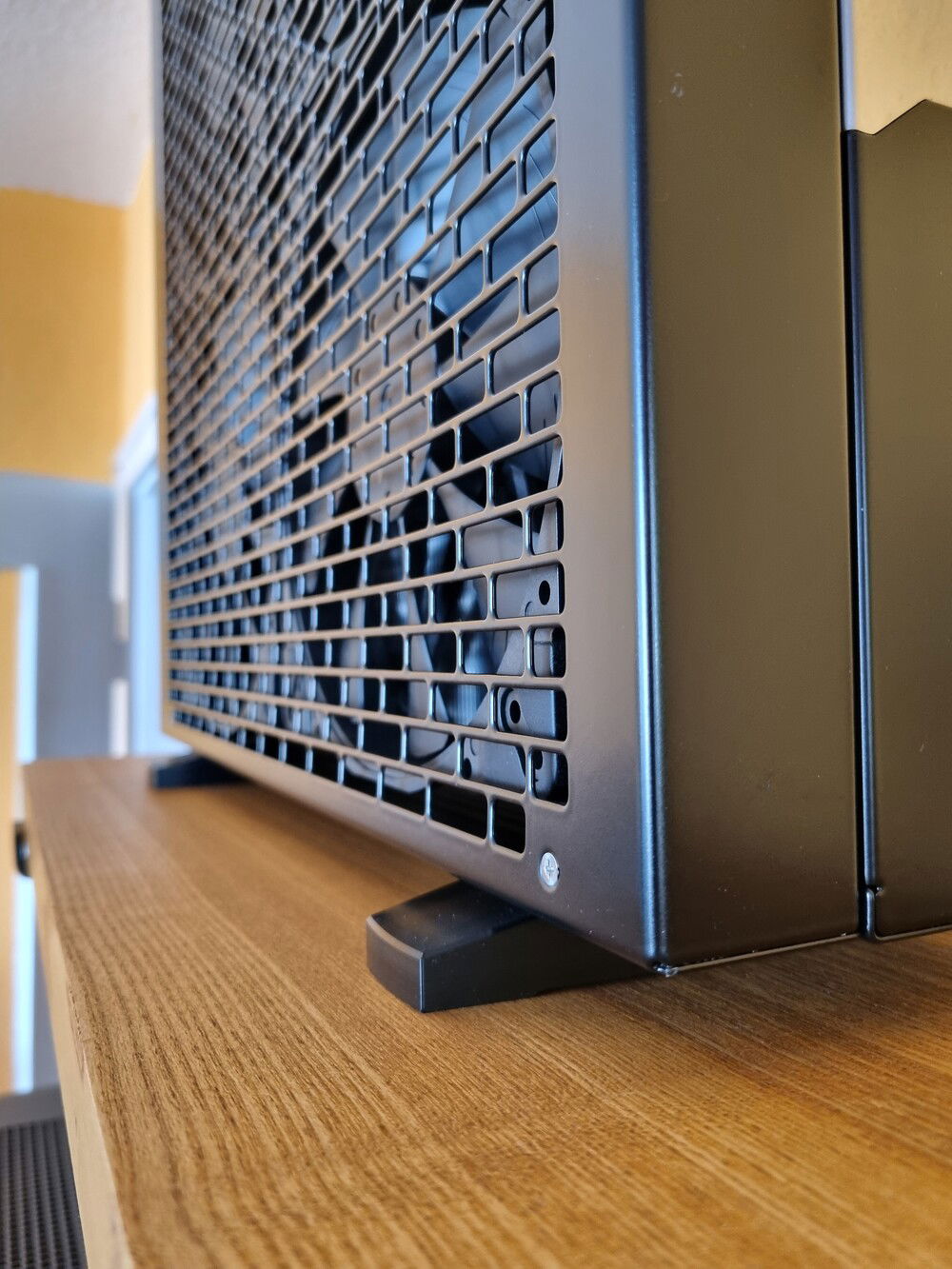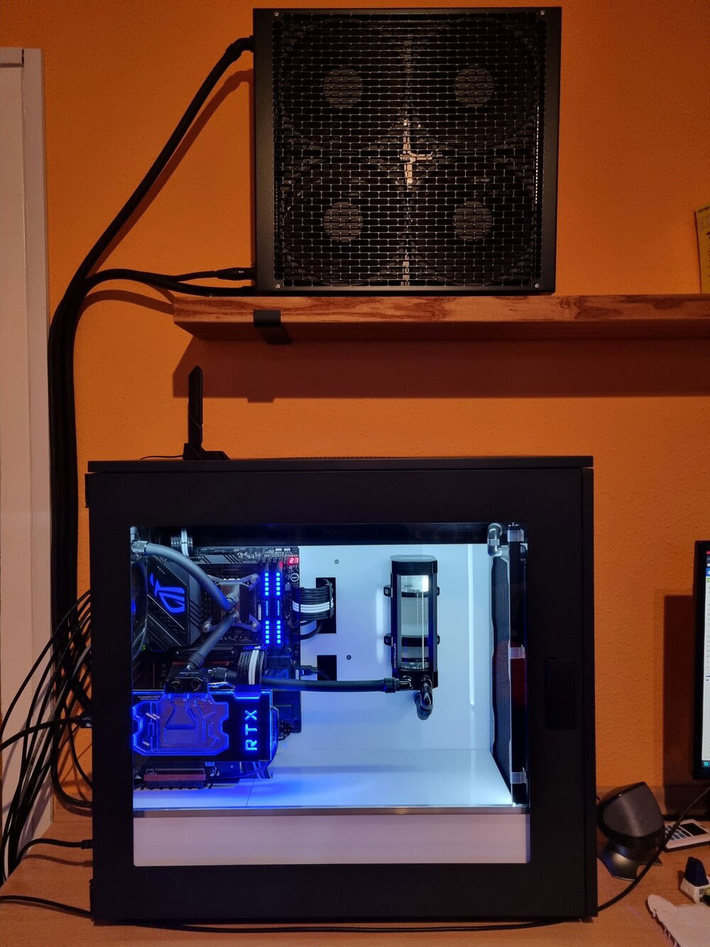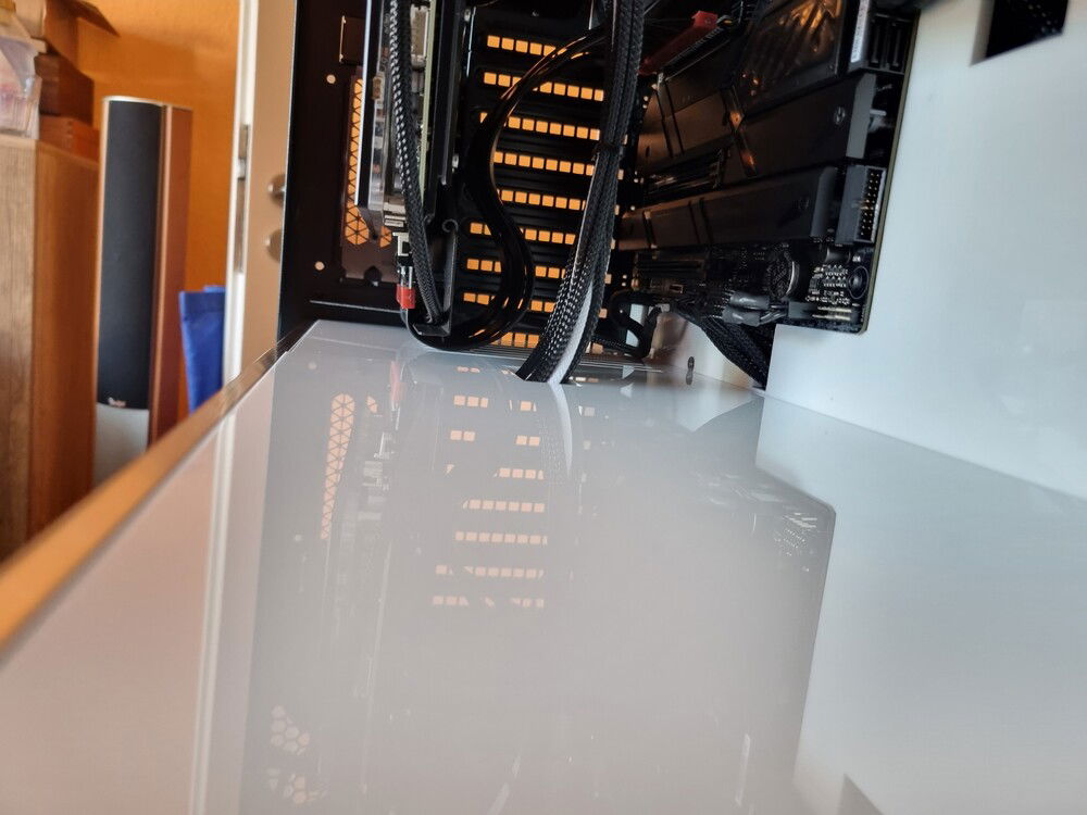 After six years, the GTX 1080 from my previous build was replaced with an RTX 3080. The RTX 3080 is mounted vertically and connected to the PCIE-Slot using a