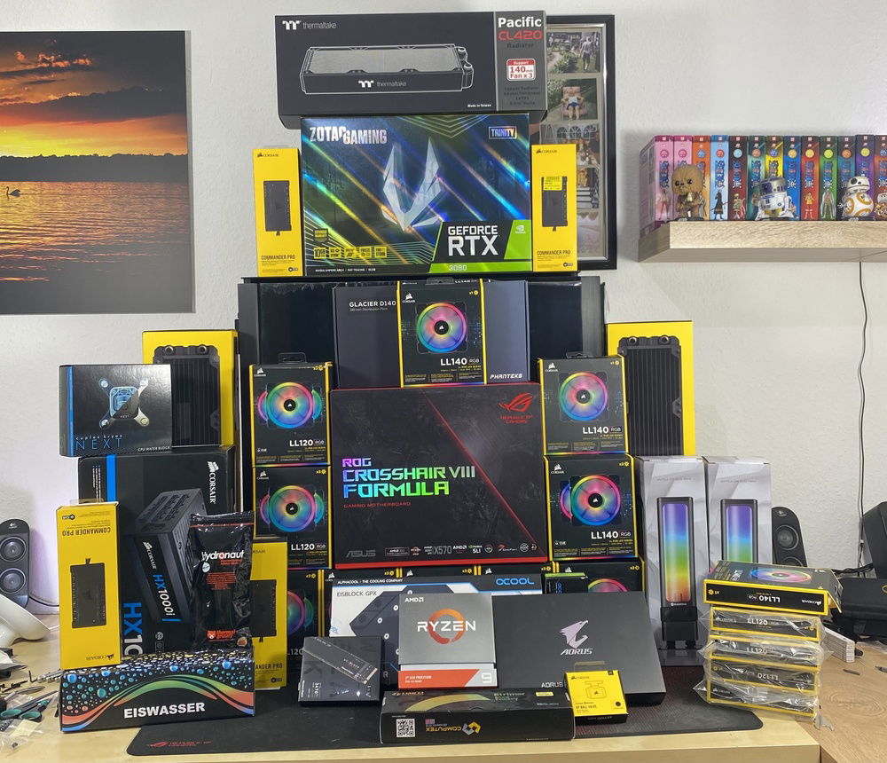 Ryzen 3950x rtx 3080 64gb ddr4 3600 mhz cl16 2tb m2 ssd 2tb ssd 2x480 mm Radiator 1x 420mm @ 65mm and 1x 240mm 17x Corsair ll120 6x Corsair ll140