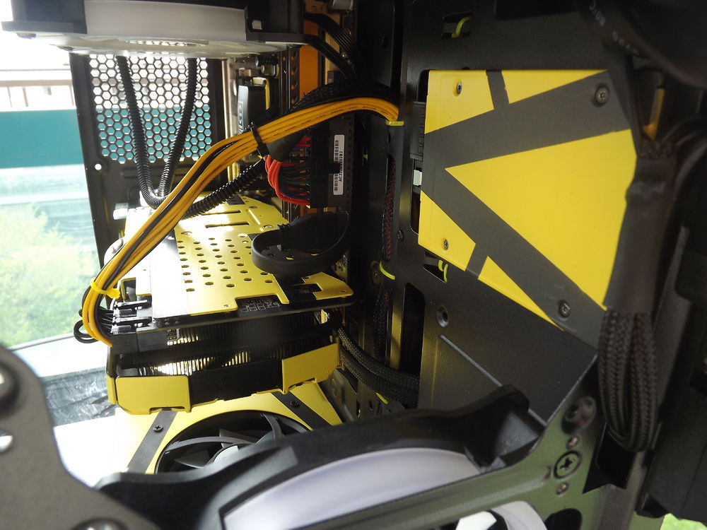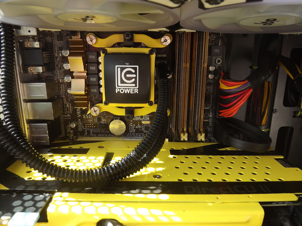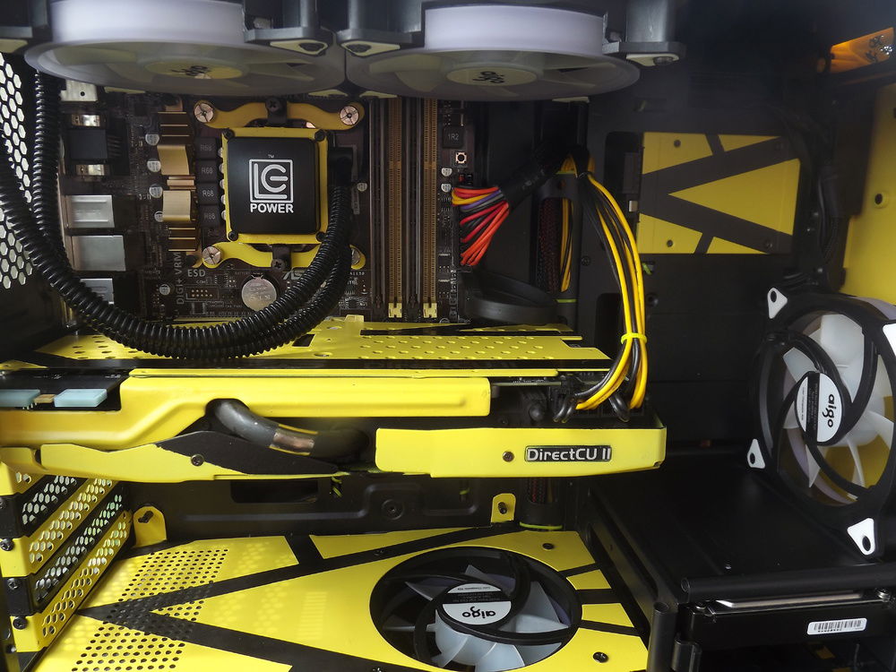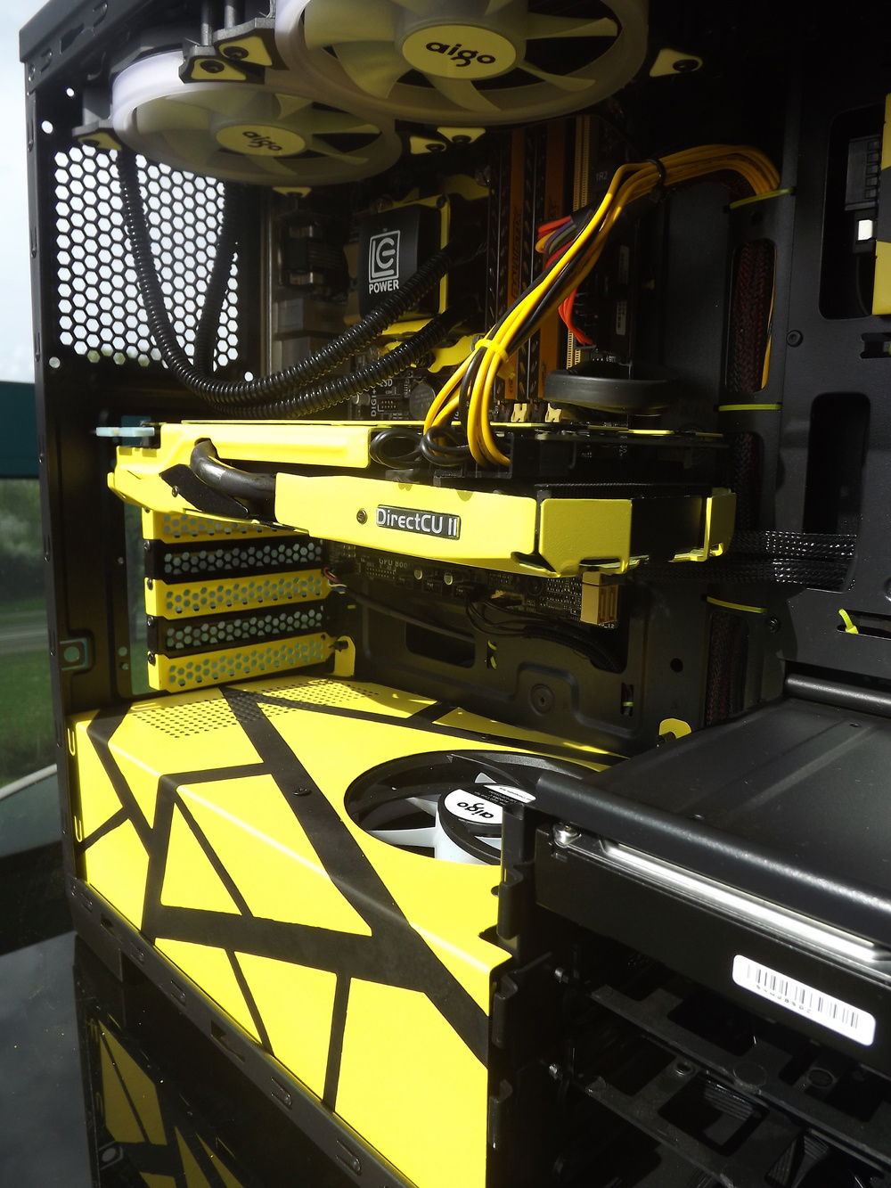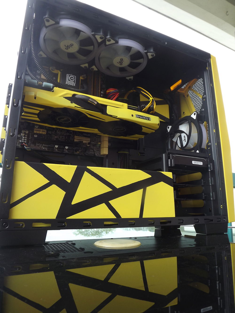 Salut , Présentation du pc que j'ai réalisé pour mon frère. Le jaune est dans le jeu! - Peinture de la coque et backplate de la GTX970, - Création d'un cache alimentation,