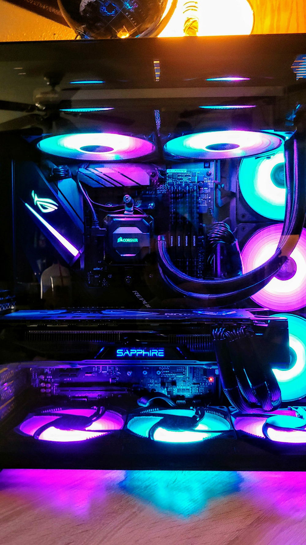 Cosmic Elegy. My latest upgrade to my main workstation includes a Ryzen 7 2700X, a Sapphire NITRO+ RX Vega 56 I got off ebay for just $275 (@300 with shipping) and I snagged a black Lian-Li PC-011 Dynamic & an ASUS ROG Strix-F X470 from Micro Center. The PSU is a bit of an overkill for this system, but I got the RM1000x for an amazing deal on Amazon. I also got the DeepCool RF120s for an amazing deal on Amazon; 2 5-packs for $35 each.