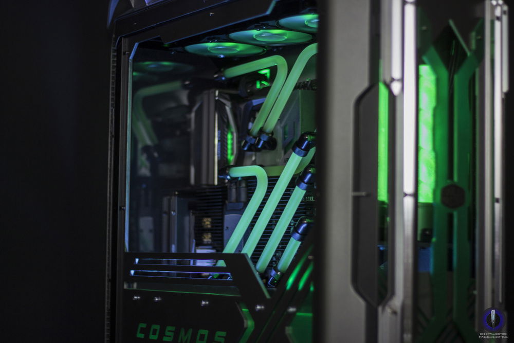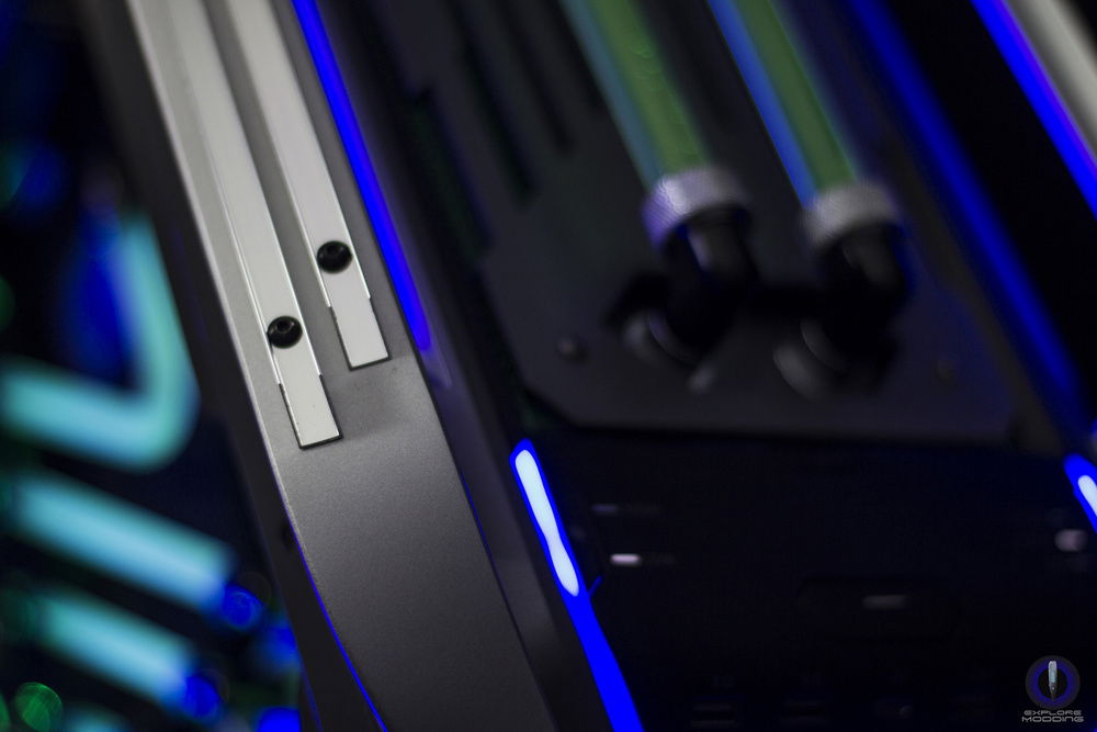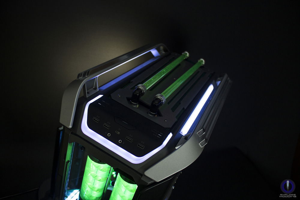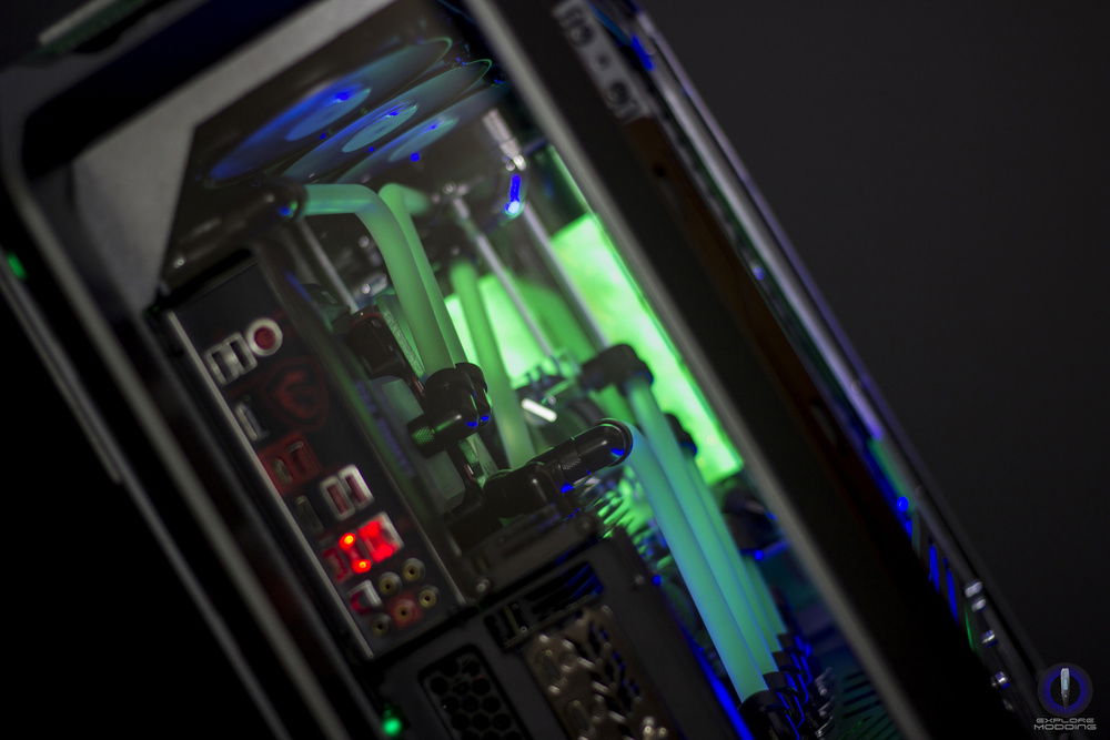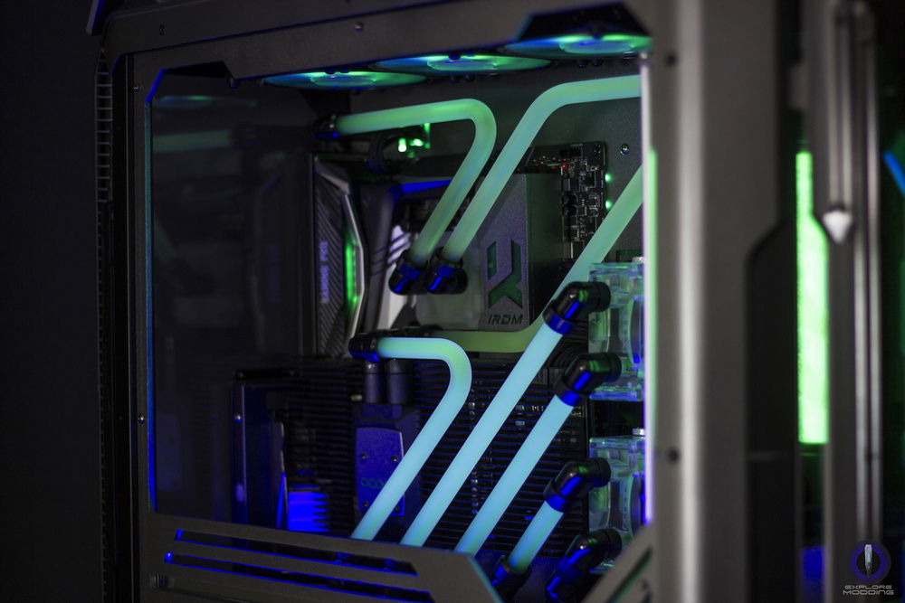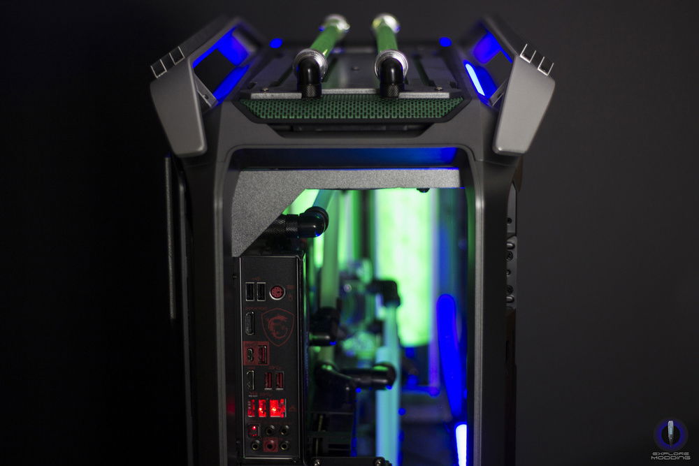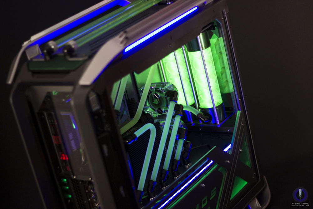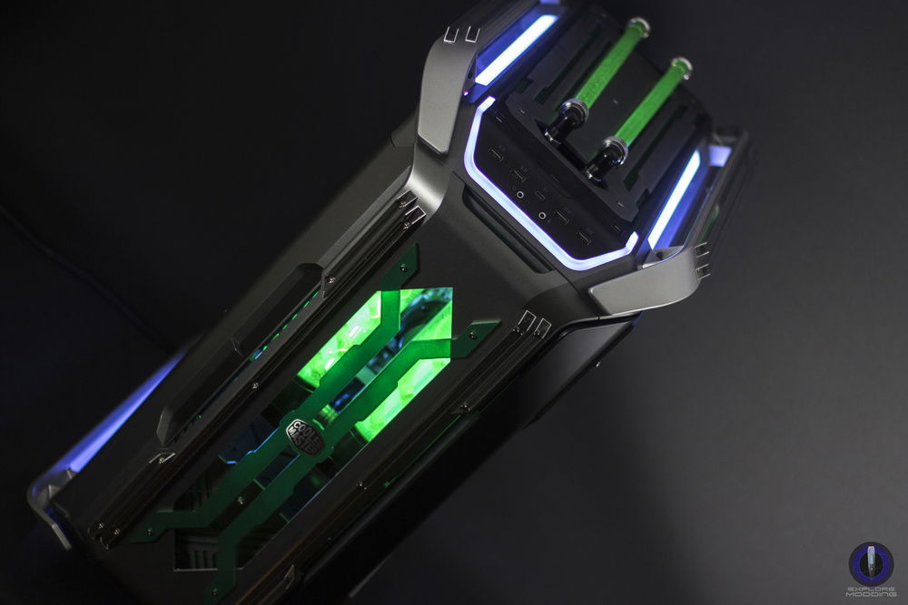 A mod based on X lines and gunmental and green colours. Everything in this build follows certain angles creating this particular X flow. It features 100% handcut acrylic panels and aluminum L-profile for a more aggressive accent. All the LEDs are RGB, so they can be switched between blu-green-white, depending on which type of look is desired, UV reactive and aggressive, full green or elegant white.
