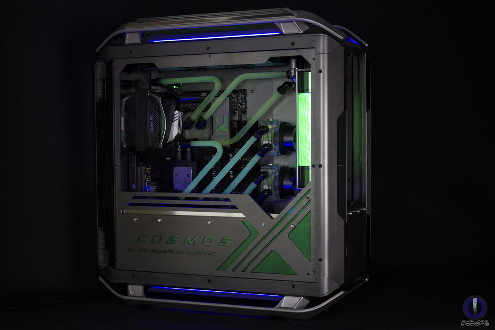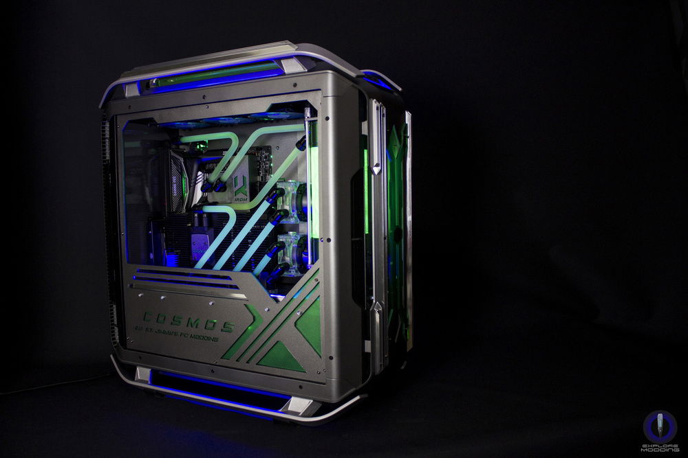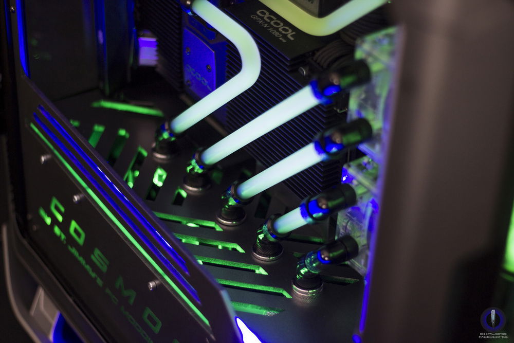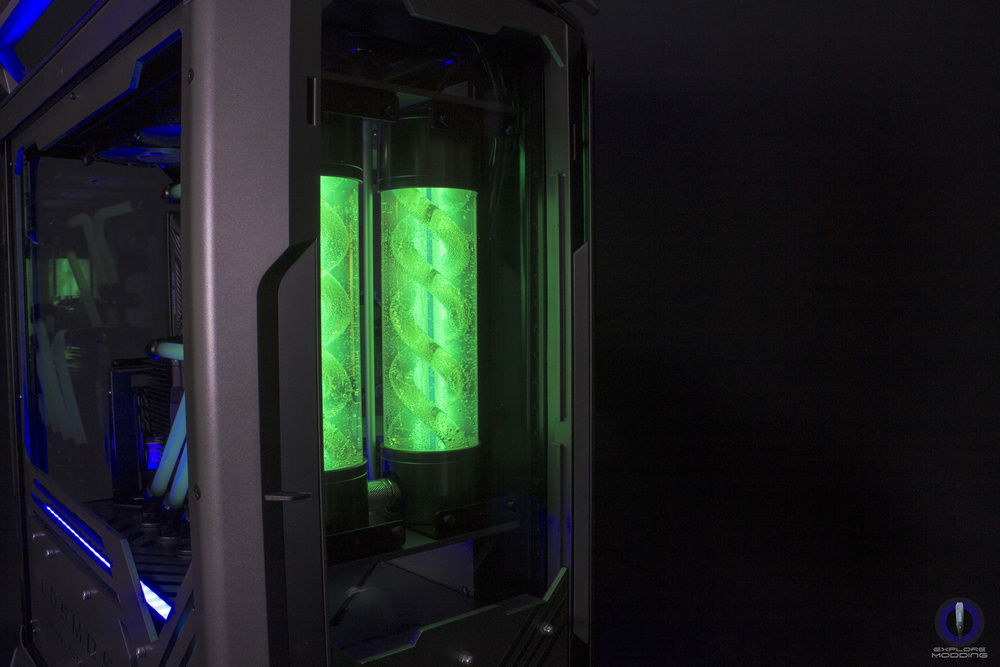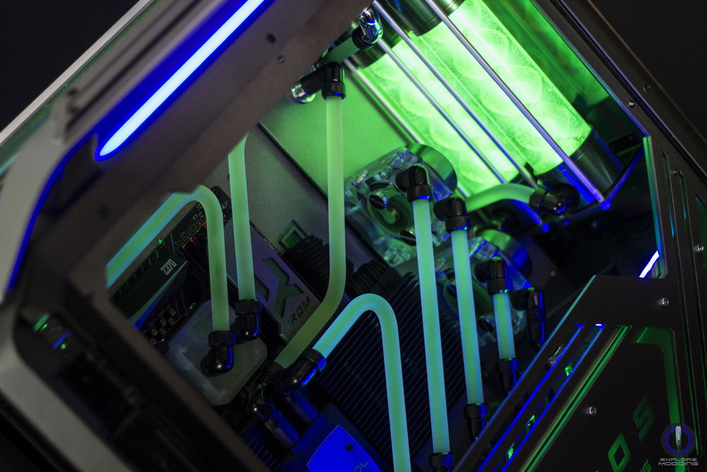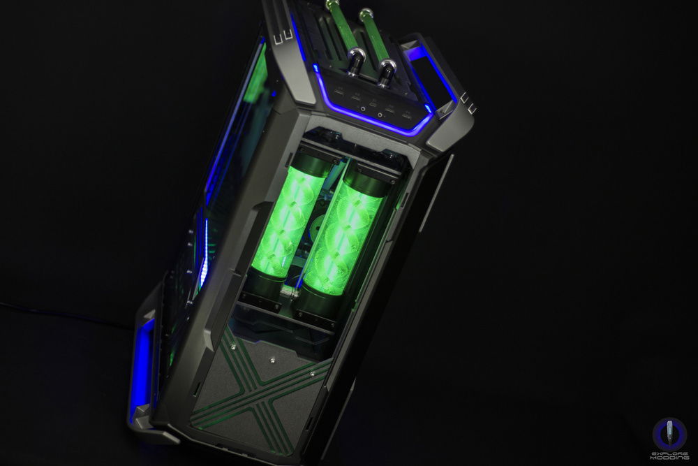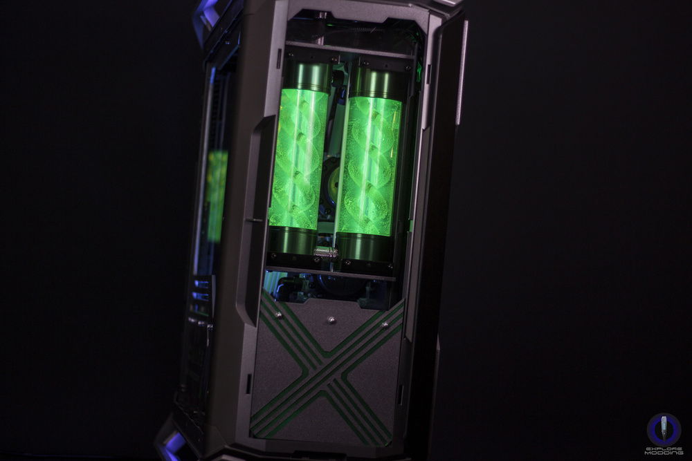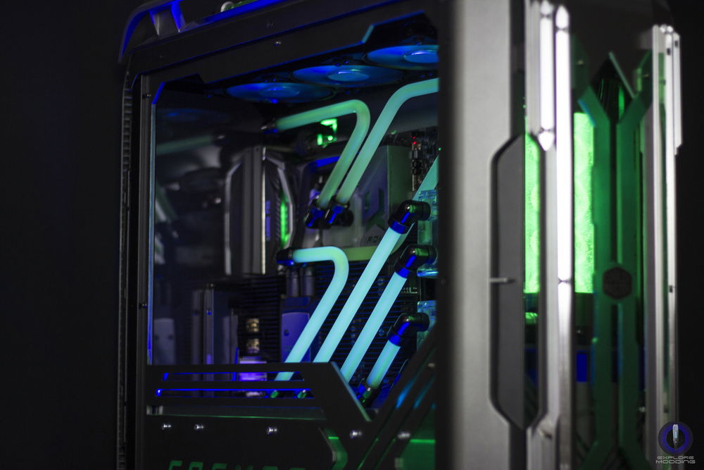 A mod based on X lines and gunmental and green colours. Everything in this build follows certain angles creating this particular X flow. It features 100% handcut acrylic panels and aluminum L-profile for a more aggressive accent. All the LEDs are RGB, so they can be switched between blu-green-white, depending on which type of look is desired, UV reactive and aggressive, full green or elegant white.