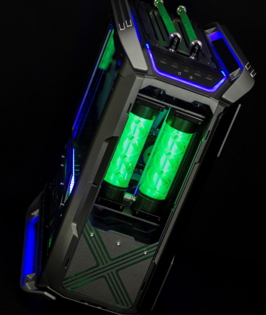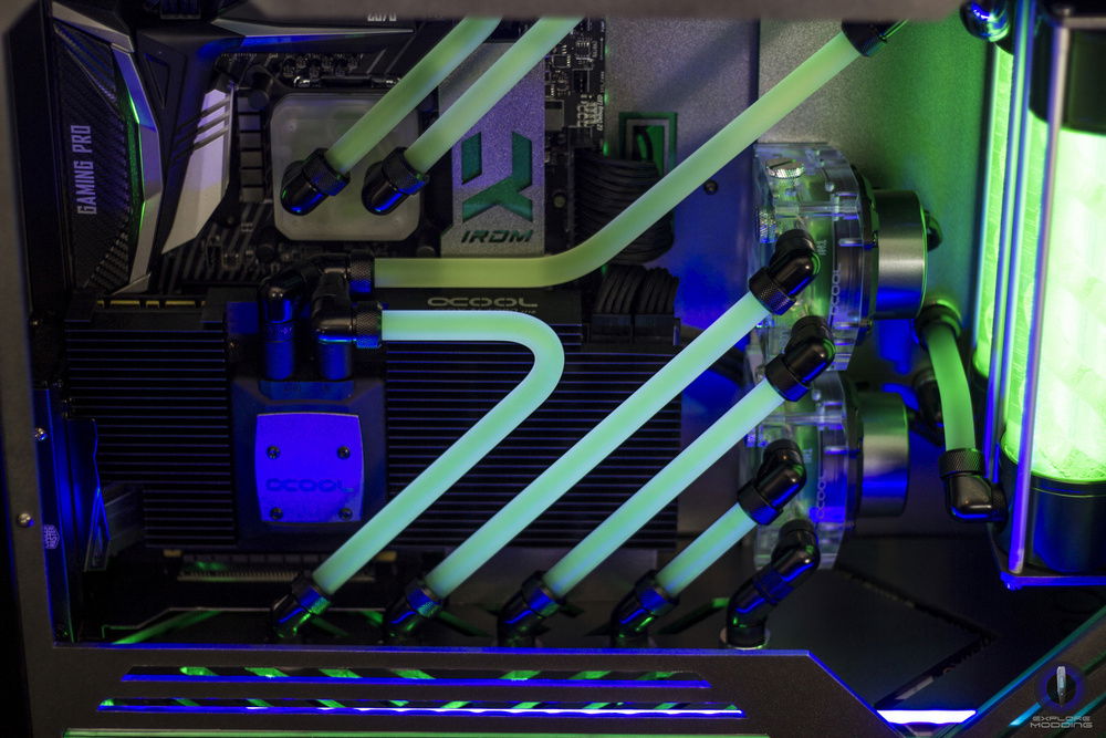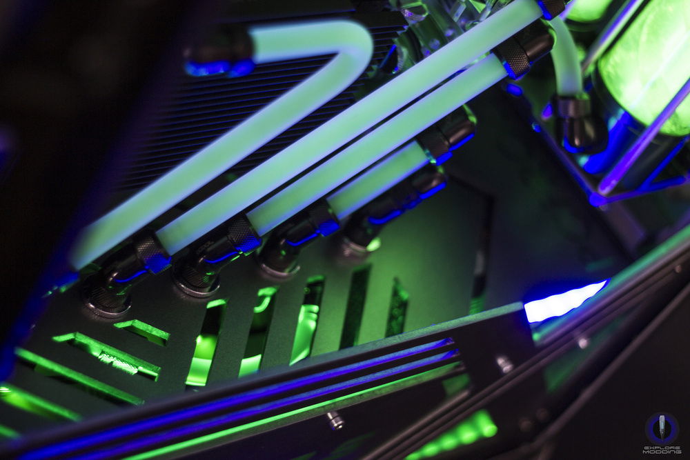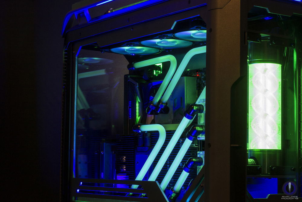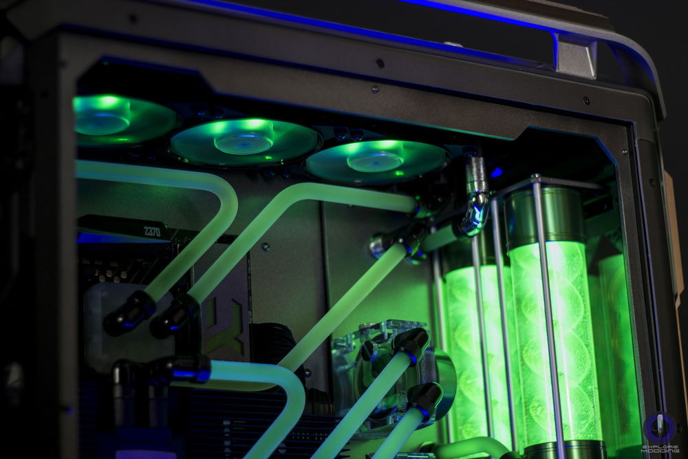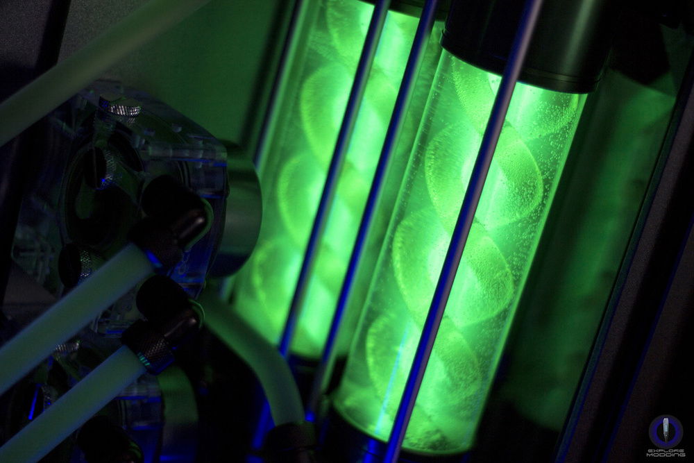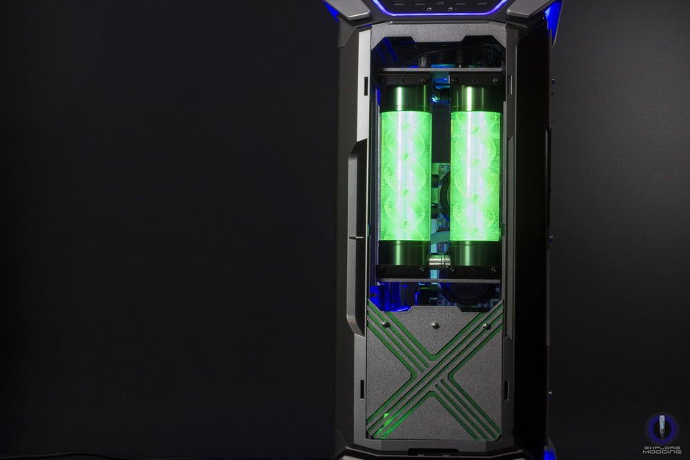 A mod based on X lines and gunmental and green colours. Everything in this build follows certain angles creating this particular X flow. It features 100% handcut acrylic panels and aluminum L-profile for a more aggressive accent. All the LEDs are RGB, so they can be switched between blu-green-white, depending on which type of look is desired, UV reactive and aggressive, full green or elegant white.