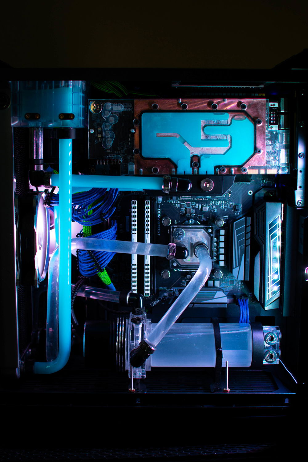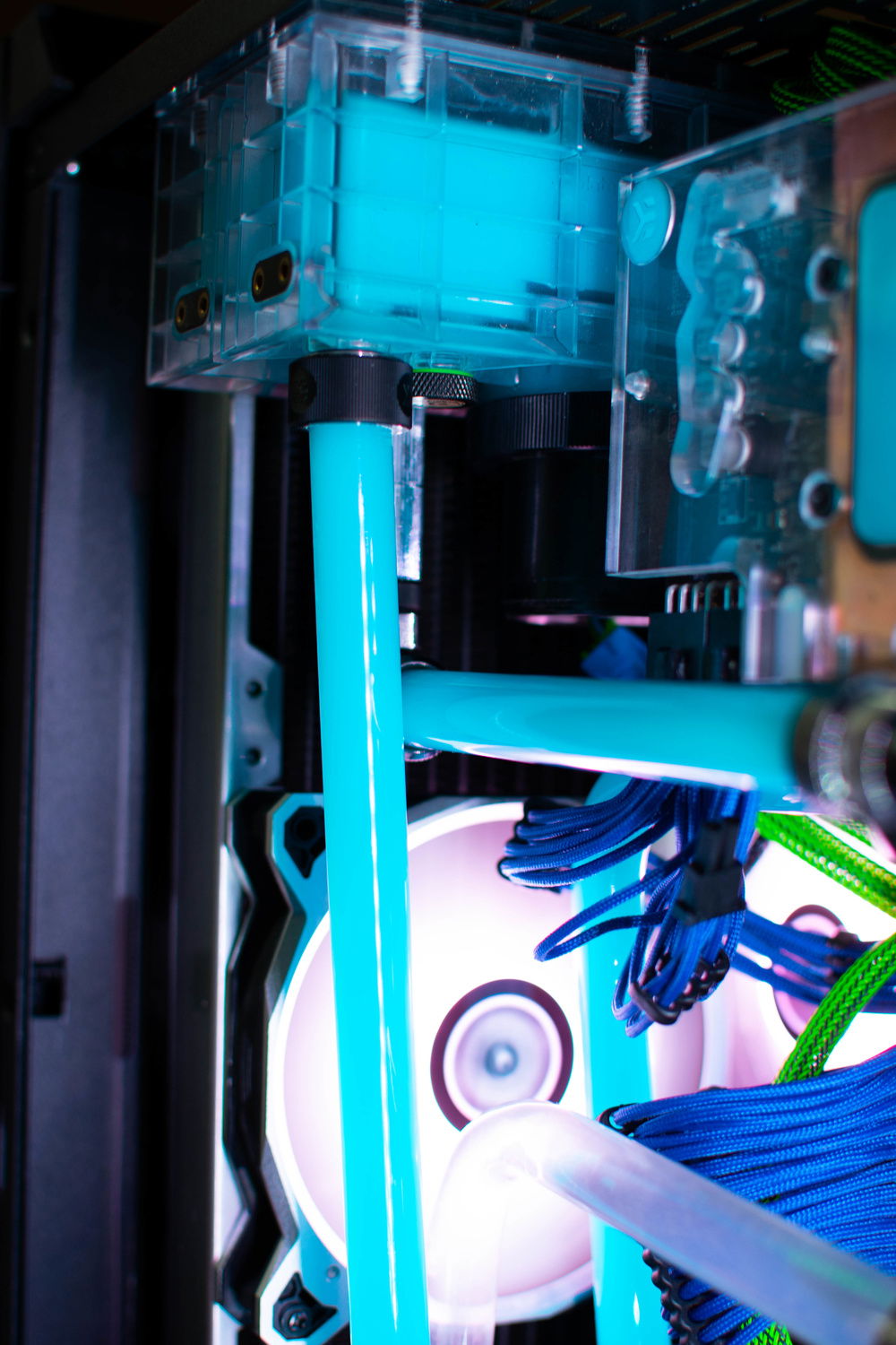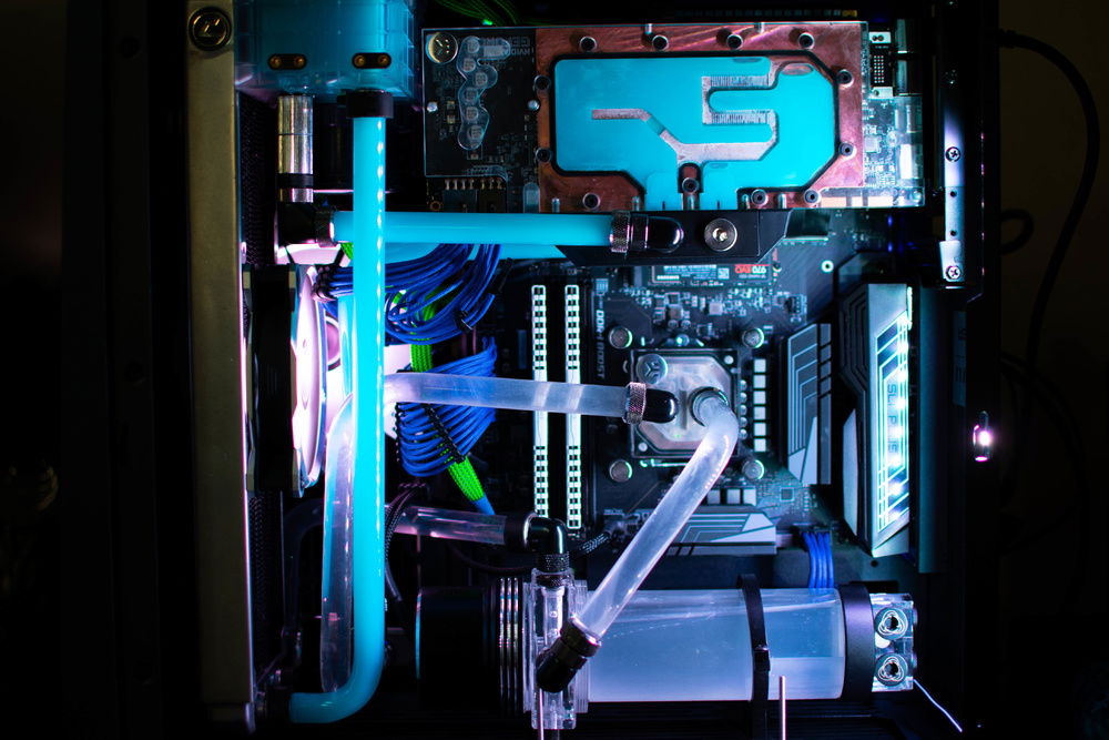 - Overall very proud of the finished product. Lots of clean 90' bends. This is my third watercooling project, so there is always room for improvement. The CPU loop will get EKWB Cryofuel Solid White in a few days. GPU loop has EKWB Cryofuel Solid Azure Blue.