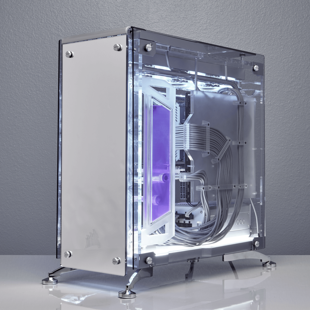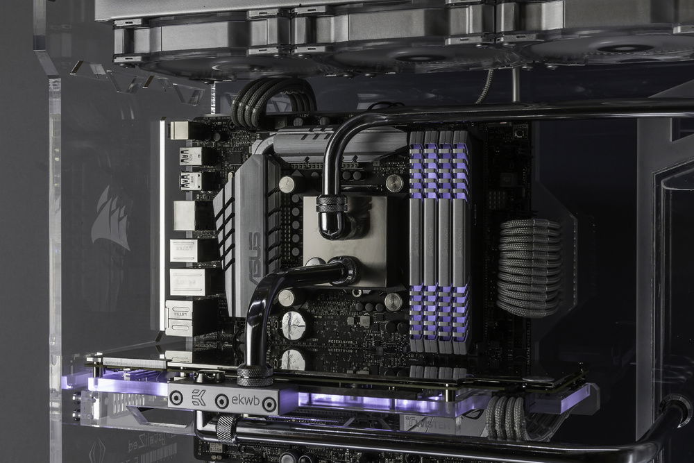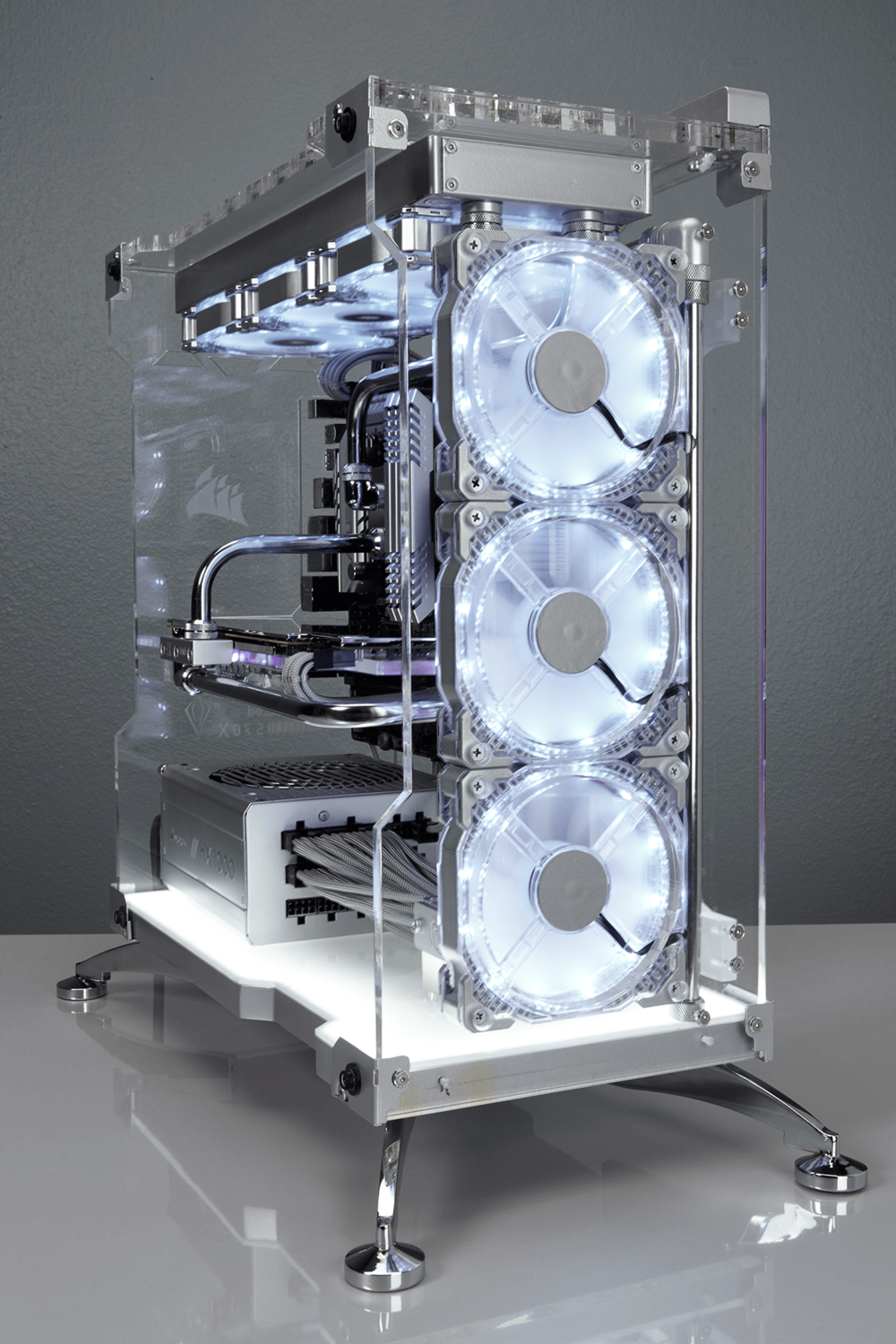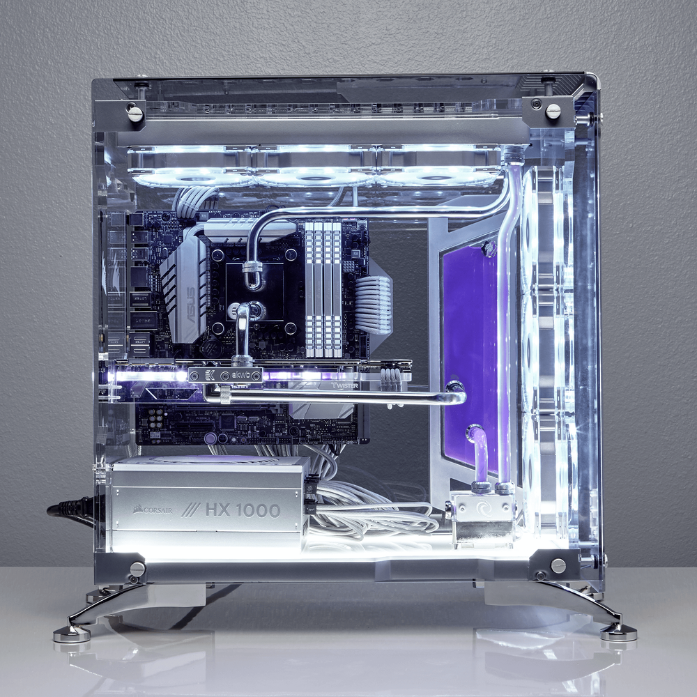 Daniel Bolognesi’s CrystaliZed asks up the question, what if an entire chassis was clear? With custom clear acrylic panels, the chassis appears to be crystallized, seemingly a floating platform for the custom reservoir, nickel-plated hardline tubing, and hand-painted silver internal components. With the addition of chromed feet and beautifully routed sleeved cables, it exudes opulence.