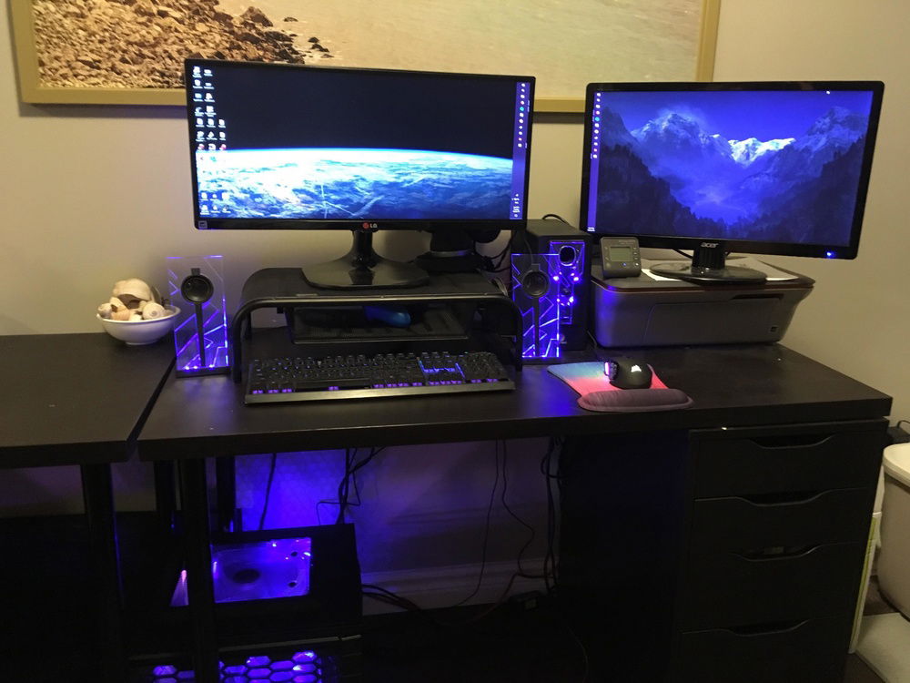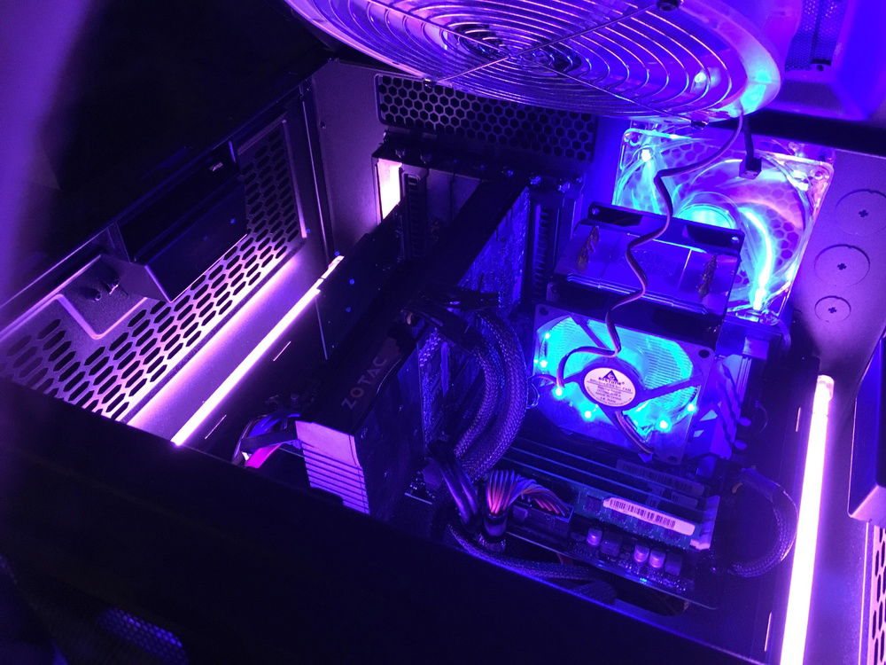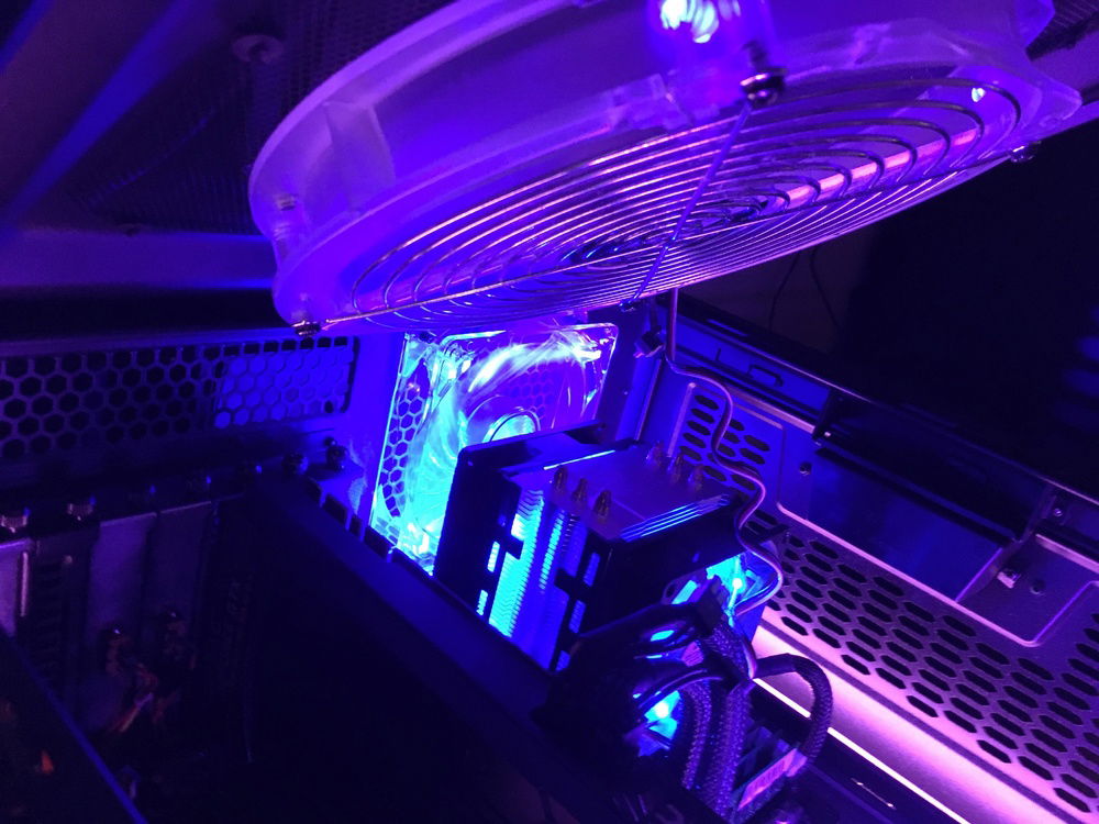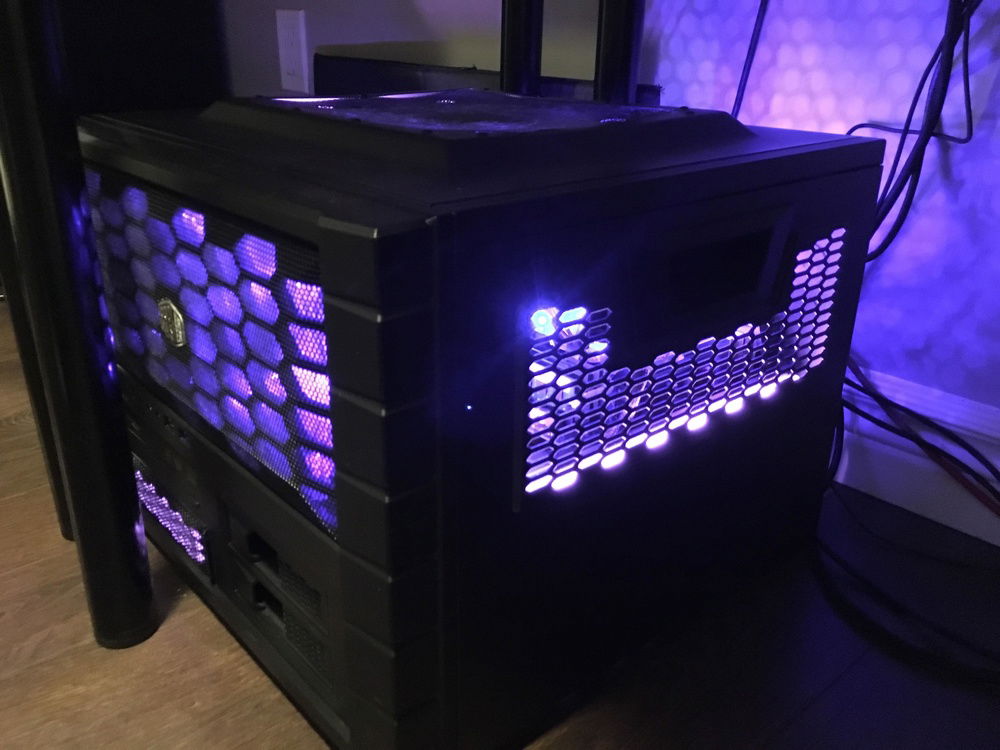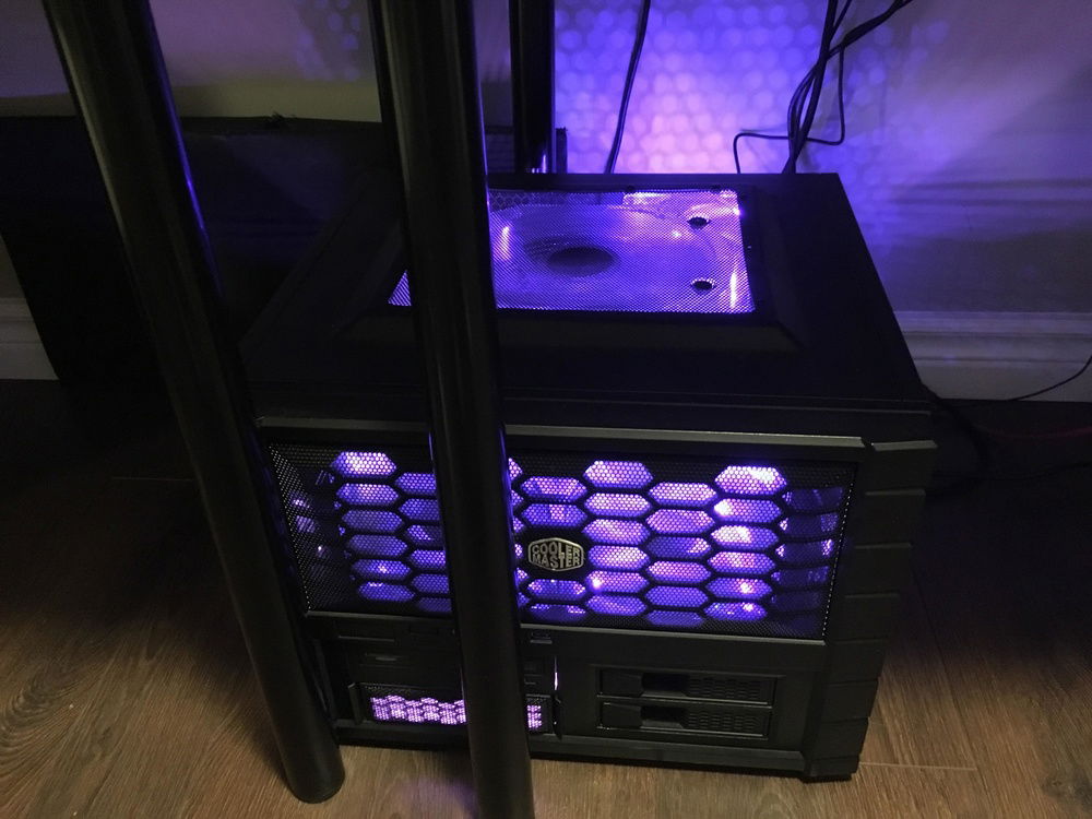 This Build has one thing in mind, LAN Parties. It might not be the lightest and fastest but gets the job done! The carry handles make it it easy to lug around and bring it to friends house for gaming activities, while looking sleek enough to find a place of rest under my desk most of the time to provide medium quality gaming with maximum enjoyment. This build also is an expert on cooling, housing over 8 blue LED fans (counting the two on my CPU cooler) and 4 purple Cold Cathode Tubes giving it a nice Purple Haze that would make Jimmy Hendrix Proud. One day this build will be glorious, boasting high FPS while remaining cool and offering maximum performance, but until then she will remain practical, functional and cool looking for everyone across the lands to see.