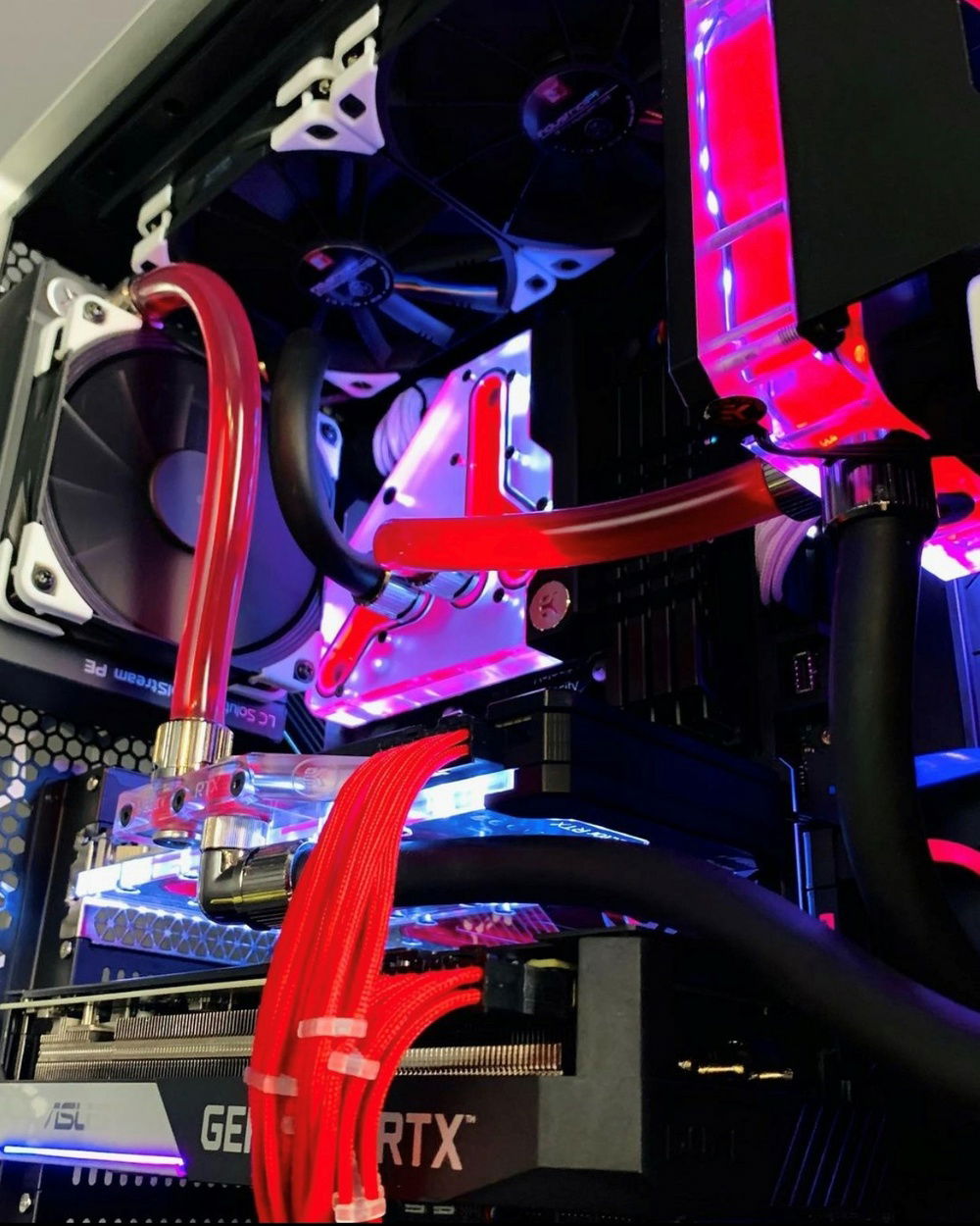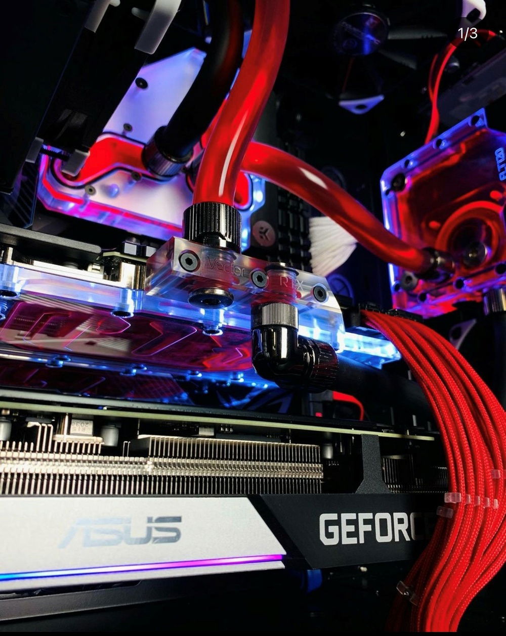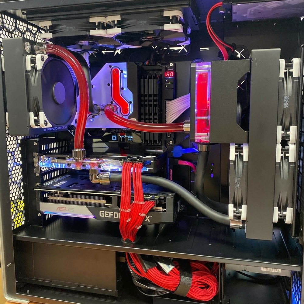 Watercooled 3090 with an aircooled 3070 being utilized for their sweet sweet CUDA cores