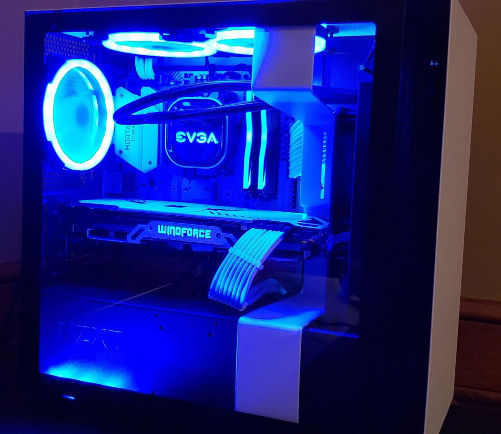 Spent more money than I'd like to admit to make the PC look nice and I'm so glad I did. Fans are the clovertale 3 pack, and work surprisingly well for being only $25. Ryzen 5 is overclocked to 3.95 GHz, it was a while ago so I forget what voltage it was at. All I remember is that it was high, and couldn't be stable at 4 GHz no matter what I tried, which was sort of disappointing. Custom painted my Gigabyte 980 white with plastidip, came out a bit messier than I hoped it to be but I love it nonetheless