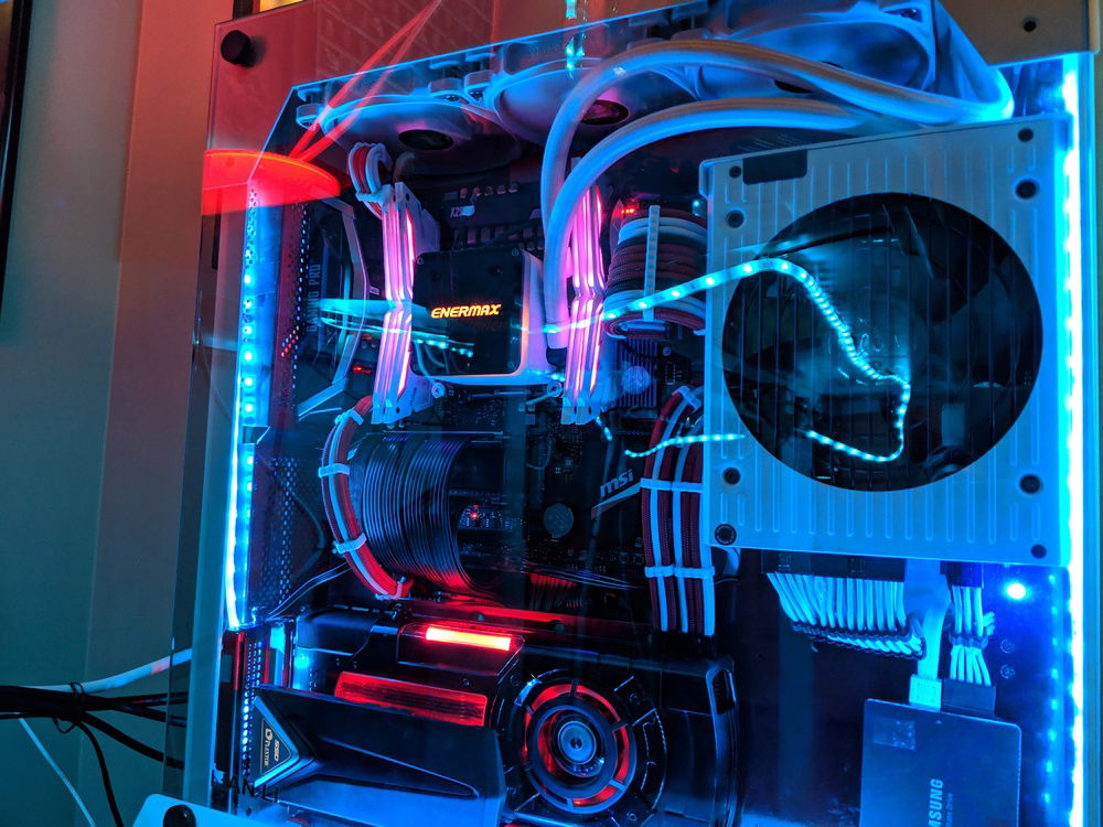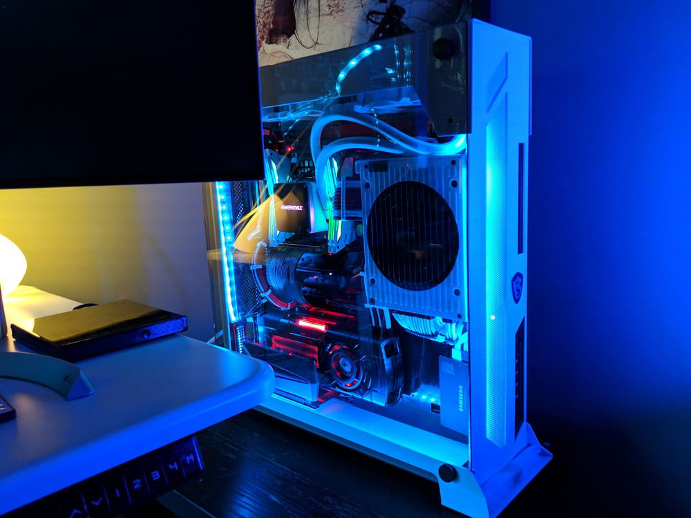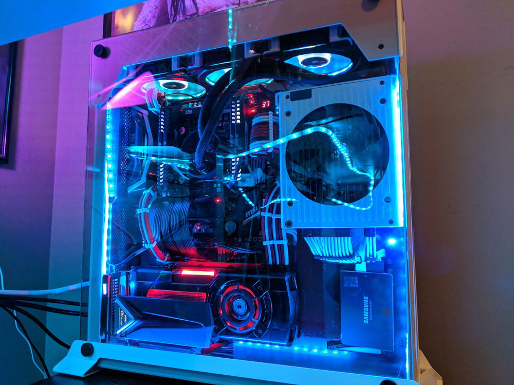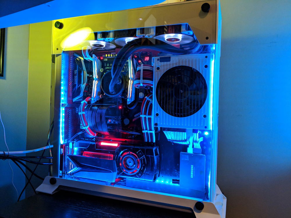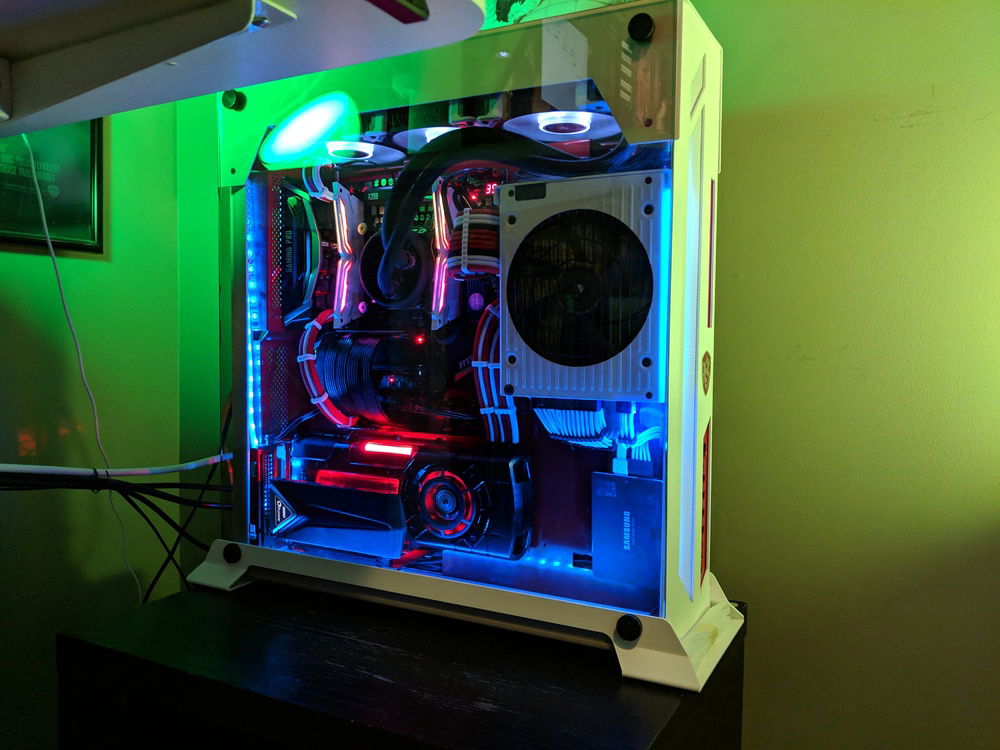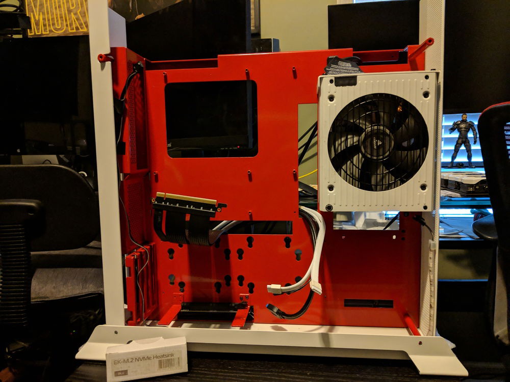 Had to move around parts and built in a custom power coated Lian Li 06SC in red and white. for those who know this case, it is a pain to build in, but happy with the end result. Overclocked to 4.5 Ghz all cores stable. Tuned for Autodesk Maya and some gaming on the side.
