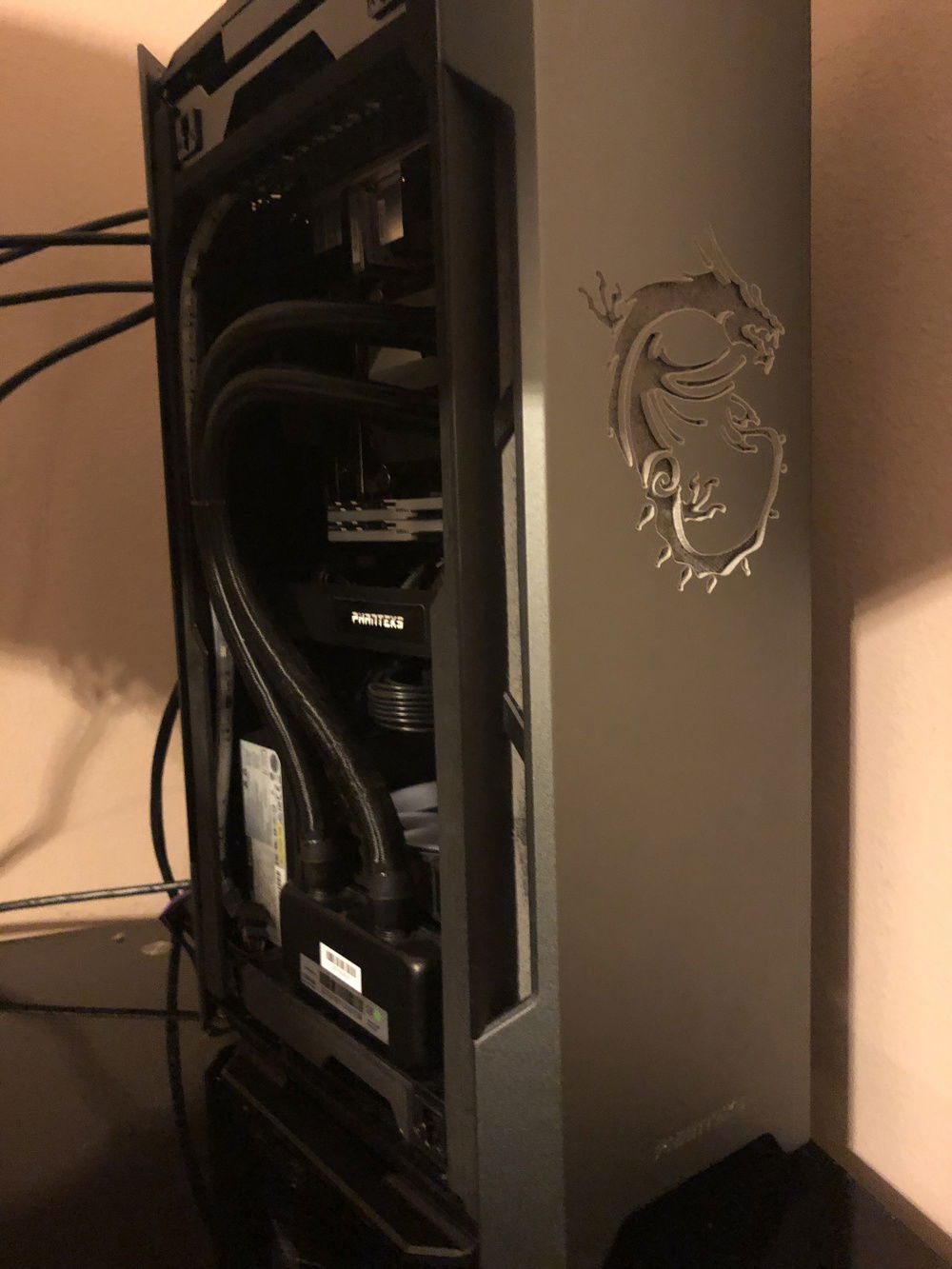 Phantek Shift Case with custom waterjet cutting of MSI logo into the front panel.