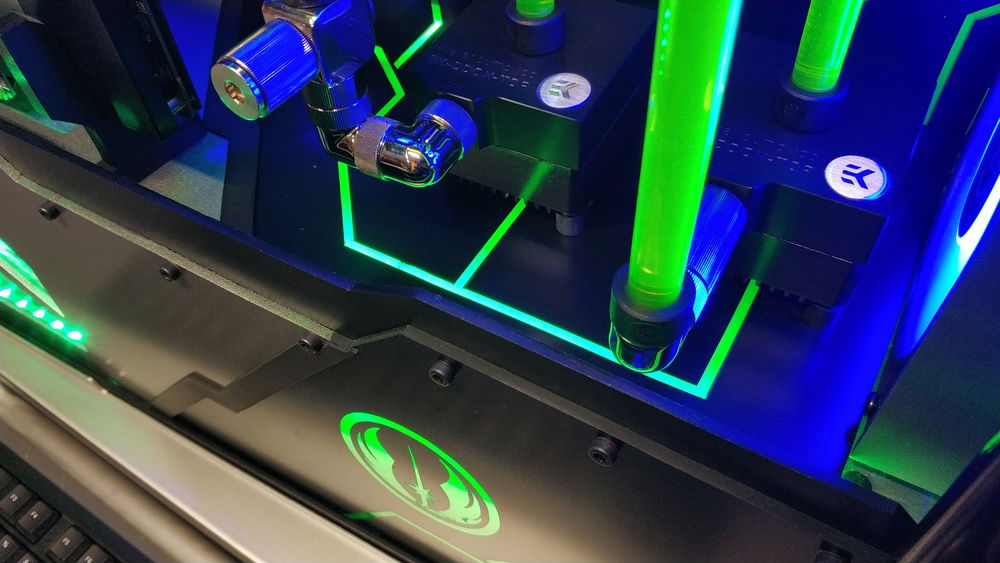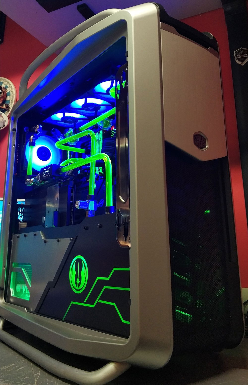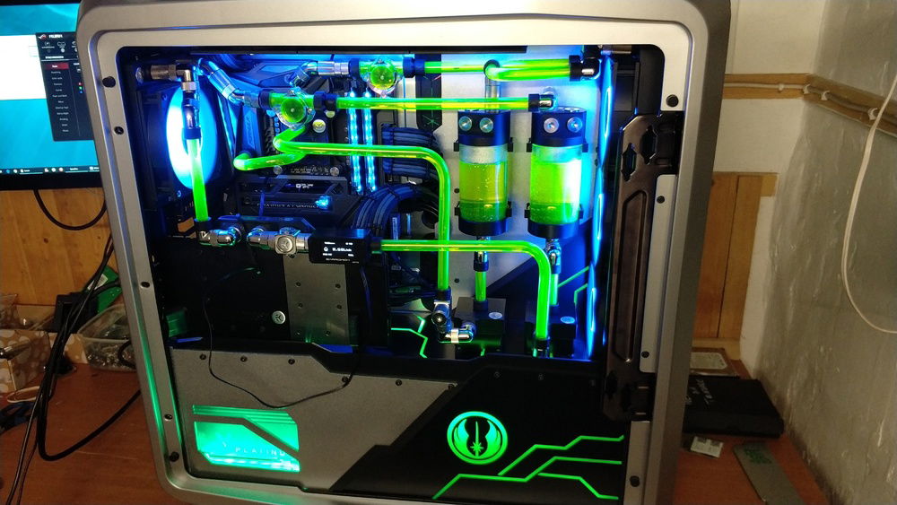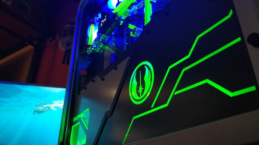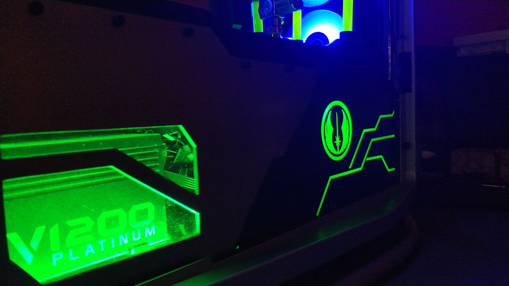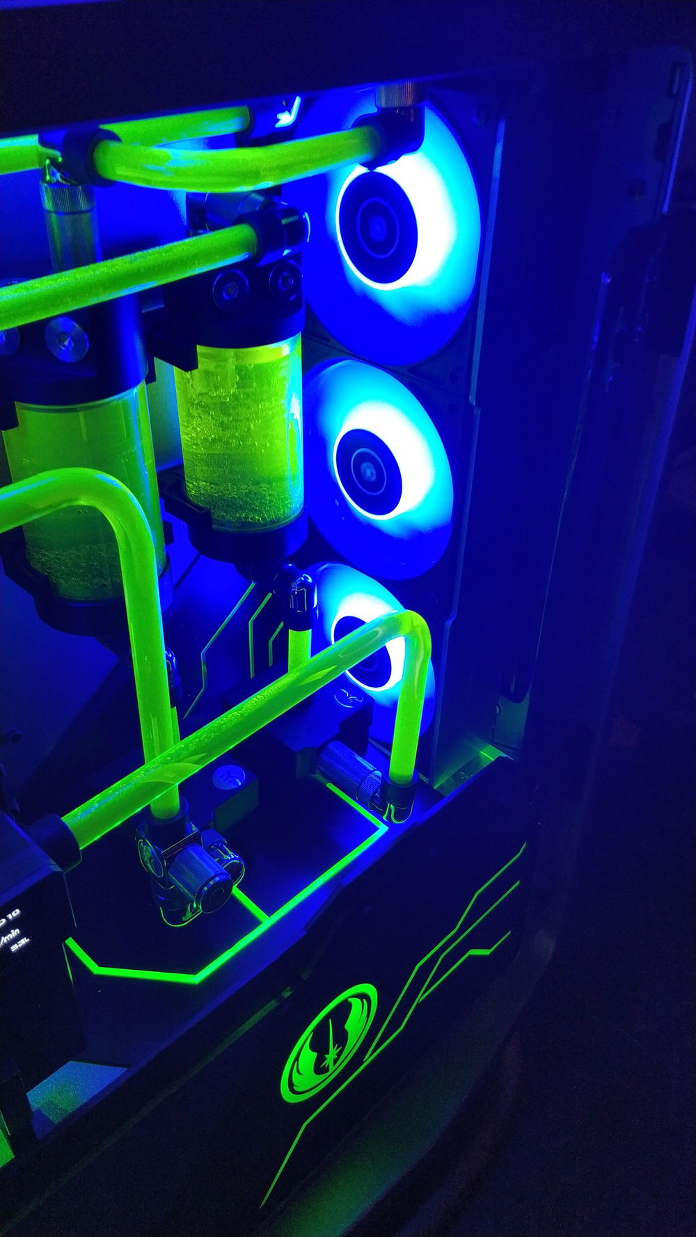 The Gpu was vertically mounted, for fit our design idea, the custom parts are made by acrylic with custom logo's!