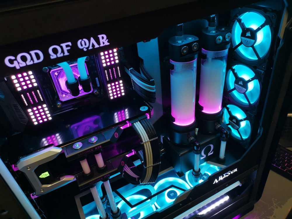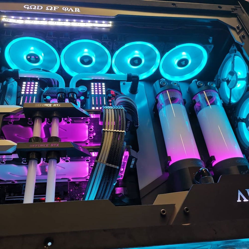 Now with a new color scheme, built-in monitor, 2080ti NVlink and 64GB of Dominator Platinum RGB!!!