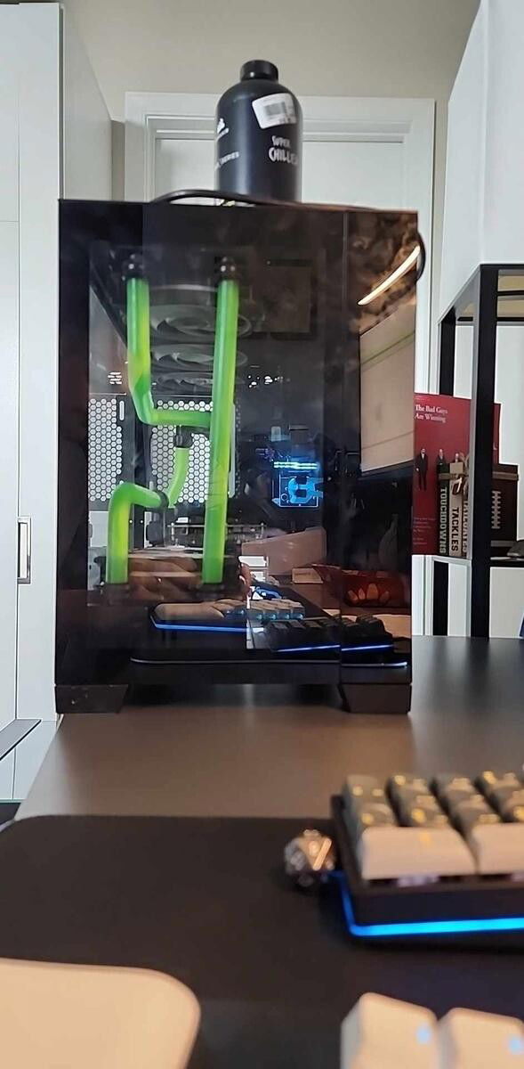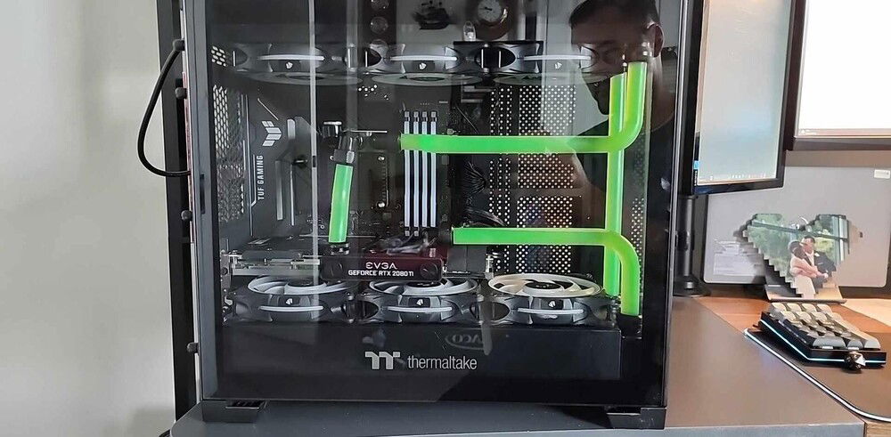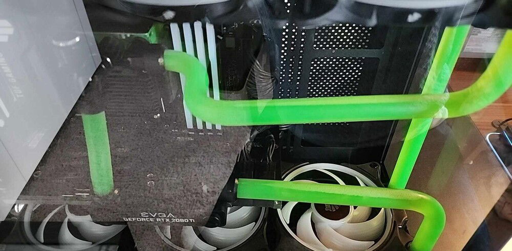 Customer wanted replacement fans and to have the system reassembled. Unfortunately, after reassembly, I discovered that the original motherboard was bad and the system would not POST. So, the customer came back with a new motherboard and RAM, and asked that, in the rebuild, I reconfigure the watercooling loop.