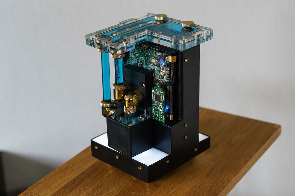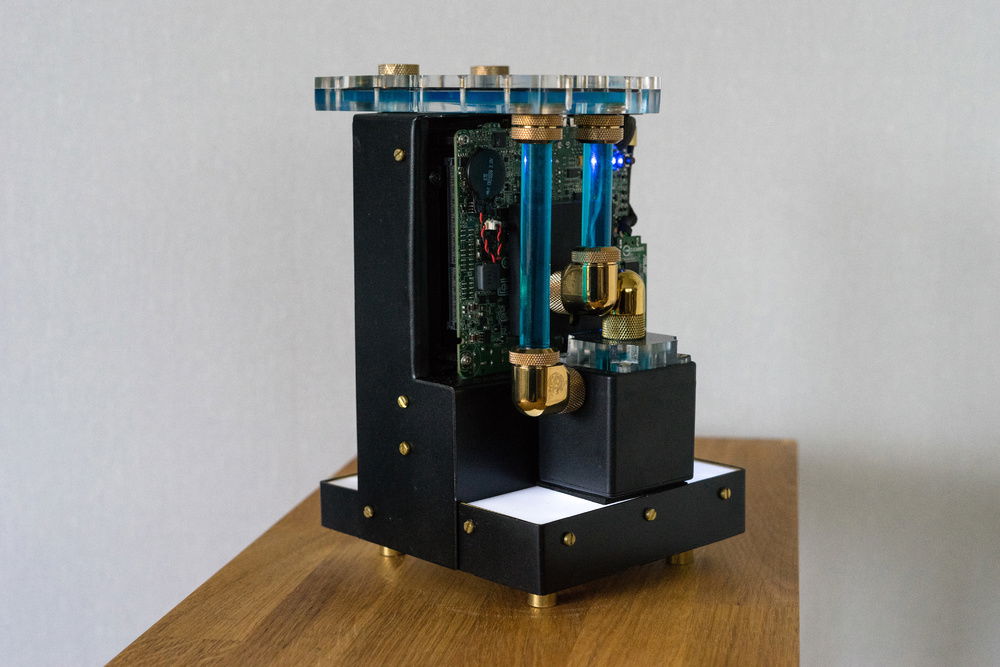 CuZn is a scratch built case for a Intel NUC. Complete with a custom CPU block and acrylic manifold.