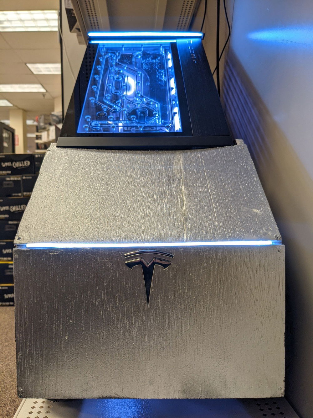Competition between stores at work inspired the creation of the CyberPC. Limited budget and restrictions in parts and time led to....this. Sponsored parts were the 5800x and the 6800 XT. Machine had to be benchmarked across Cinebench R20 and 3dmark Timespy so most of the remaining budget went to cooling.