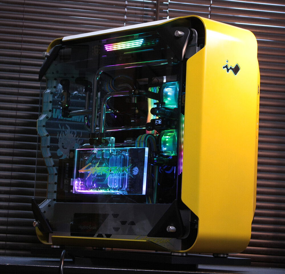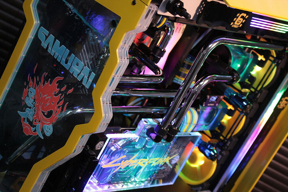 This is a "CyberPunk 2077" theme custom PC and case mod made by Toru Mod.