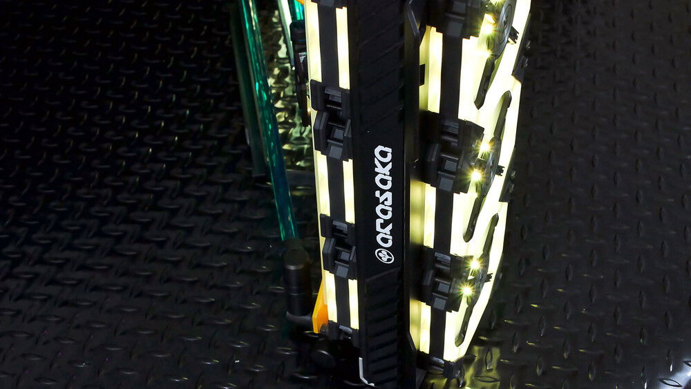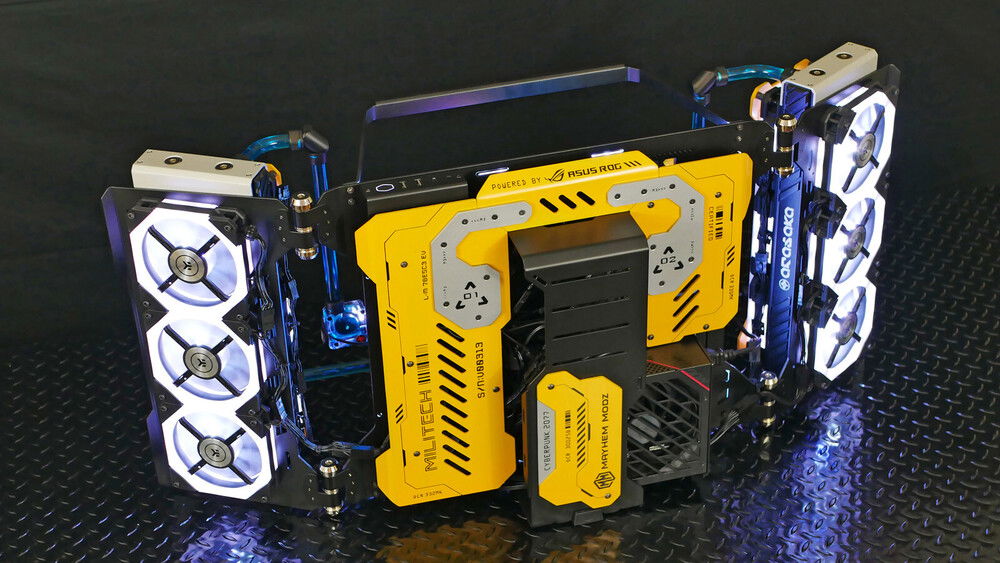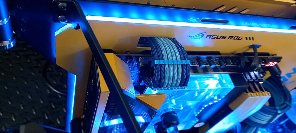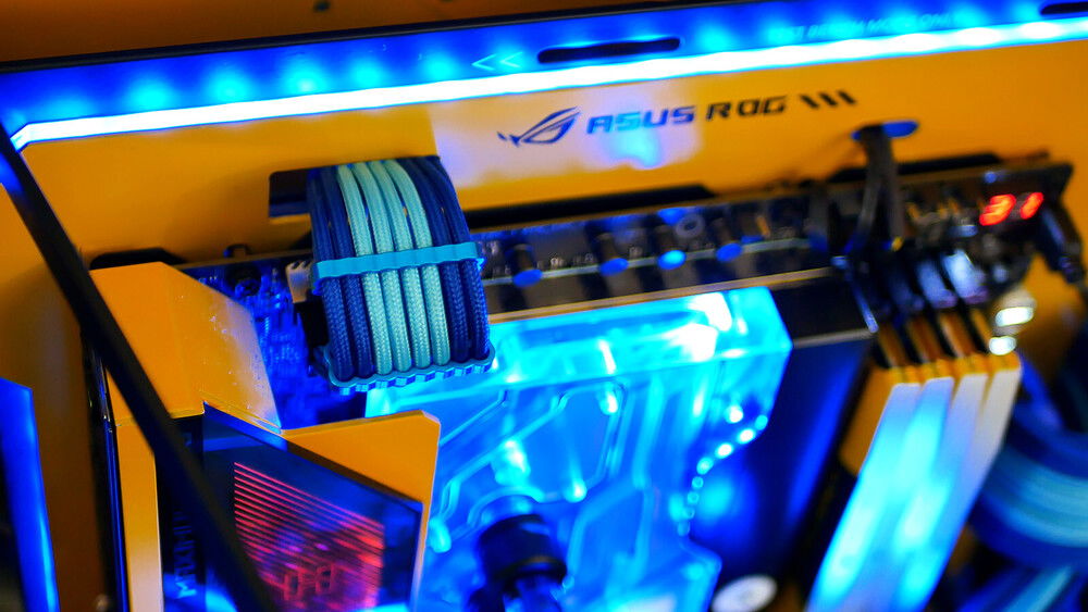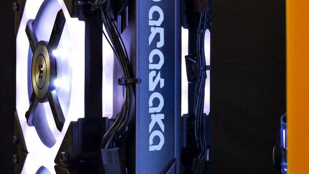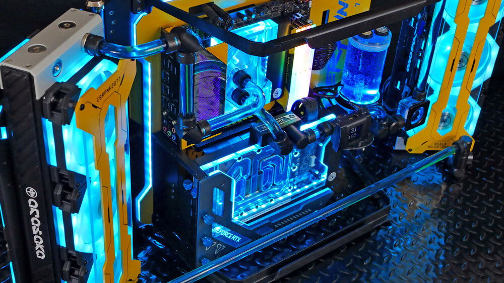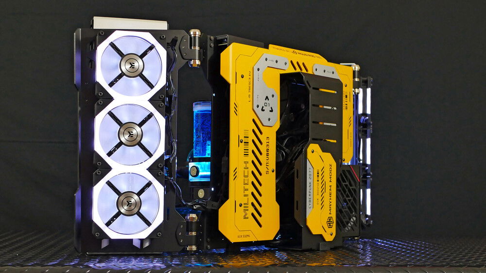 The frame has been enriched with customizations from the motherboard to the additional panels on the back to cover all the cables, to the radiator fan covers, acid etching of the tempered glass, the cyberpunk theme is always compelling and I would never stop creating customizations on it.
