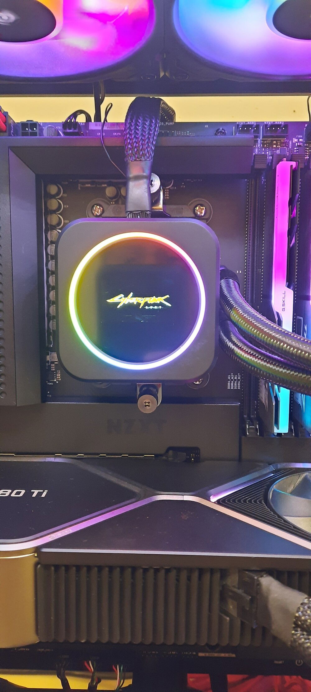 This build used the NZXT Cyberpunk case. The H710i Cyberpunk is a mid-tower chassis with the added intrigue and aesthetics of the world of Cyberpunk 2077.