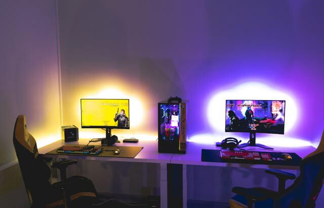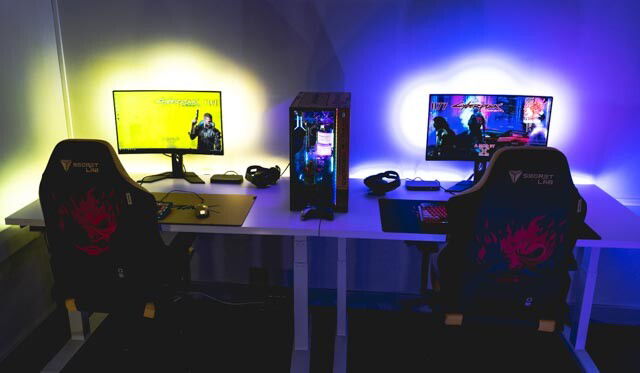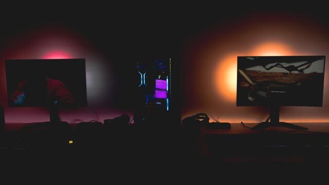 Concept 2 gaming rigs from one machine, this was planned in with philips hue lighting for reactive lighting to the game for each side, lol just realised I did not update this... oops