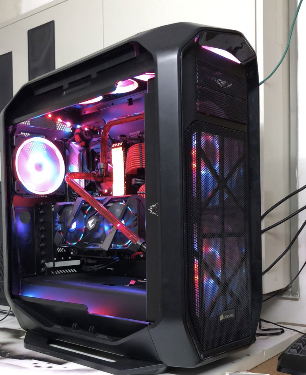 Well, this is my current main gaming rig - my baby has come a long way and it took me a while to get the 400 mm radiator in there, hence the corsair 780t is heavily modded - the front is completely overhauled to ensure the two 200 mm fans have enough space...as I was already taking the completely apart, all original red lighting was removed and changed to ARGB. Will upload a couple more (and better) pics in the coming days.