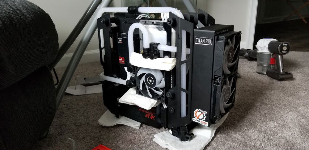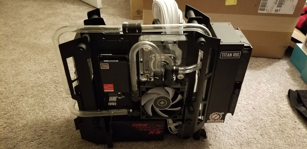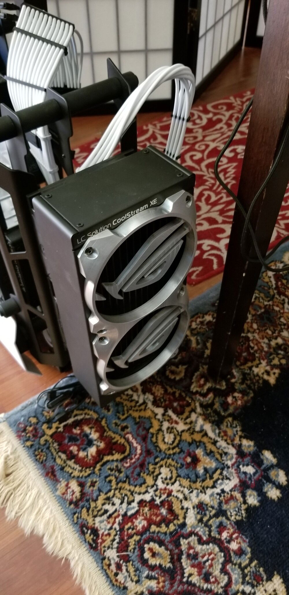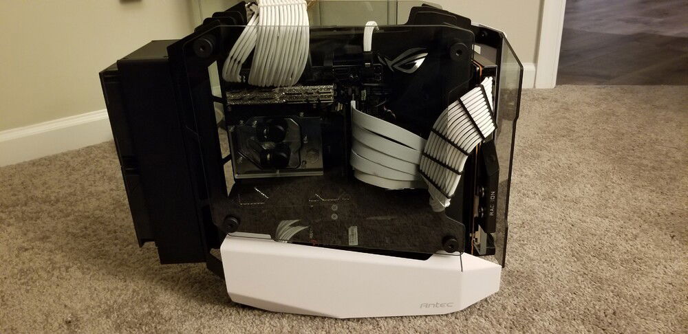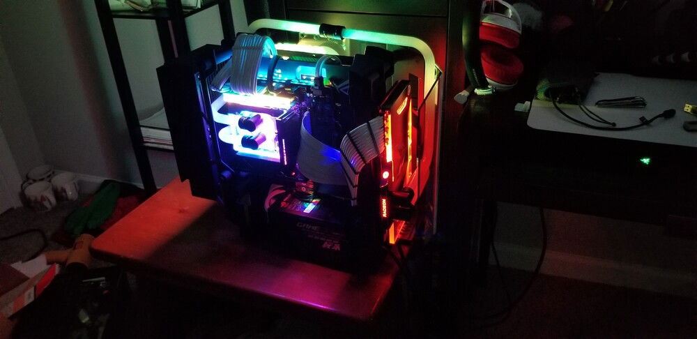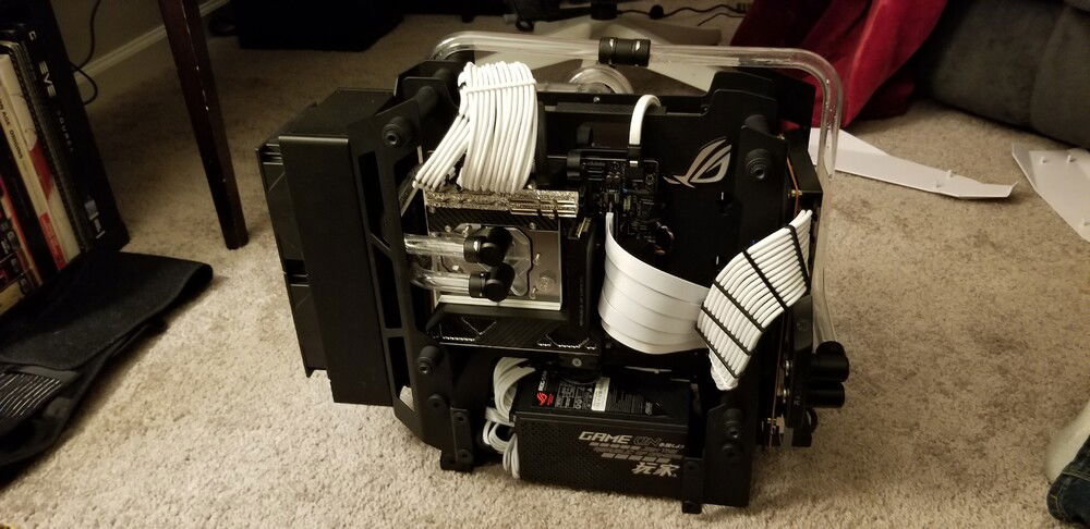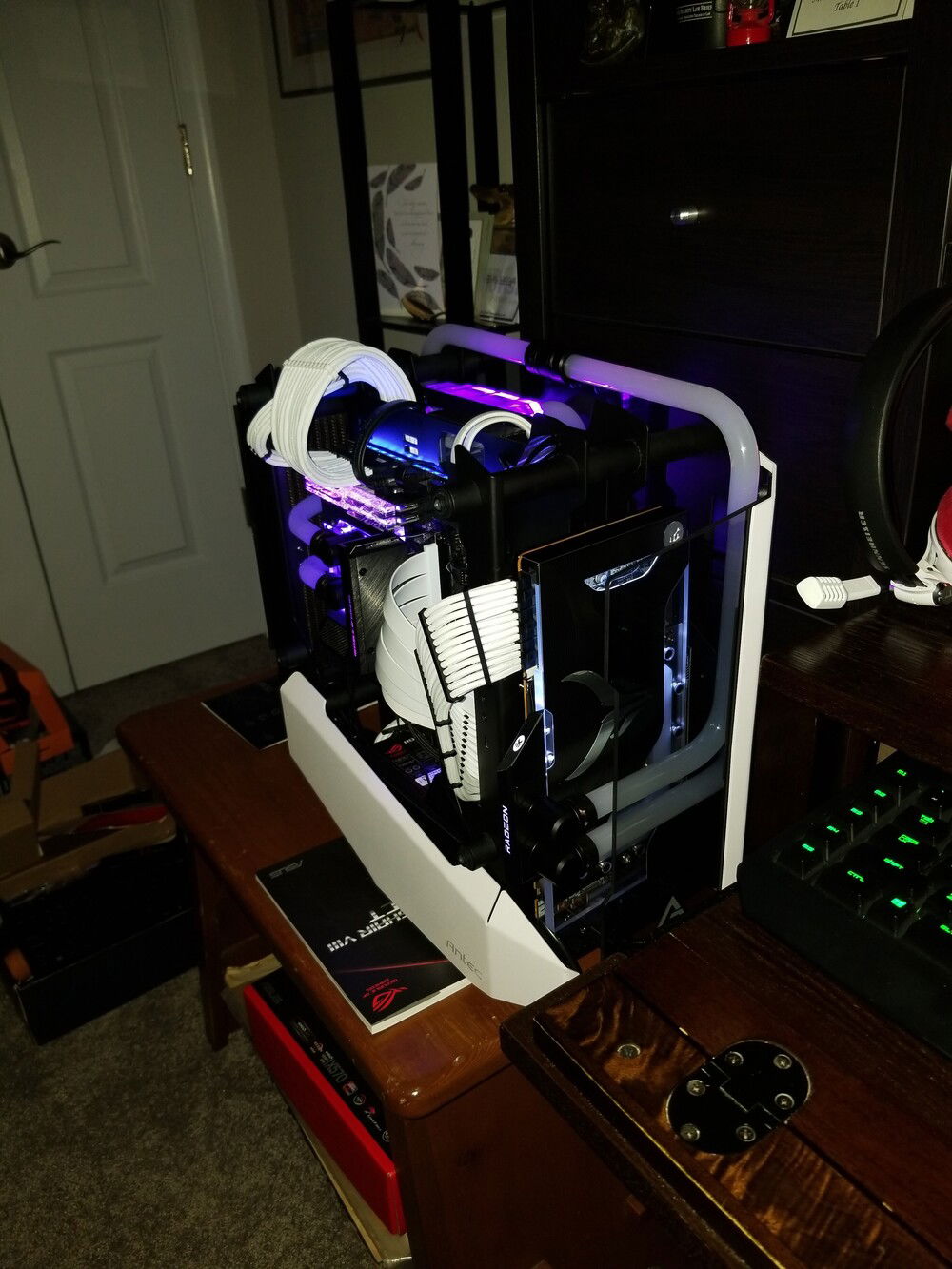 While this is not perfect, it is the build that I have wanted to do for a while now! This was my first time ever attempting hardlines, and some mistakes were made (messed up a few times and ordered way too much tubing, lol!), but it went pretty well! I am very pleased with the end result, but we shall see if I do a bit more with the case/frame...I tried to to get/find 24+8 bridged aluminum cable combs (black) for the motherboard and EPS power, but, alas, it was not to be. I ultimately settled on getting some more 24-pin combs and using 8-pin combs to join the EPS power to the underside of the 24-pin cable for part of the run. This cleaned things up substantially! Can't say that the end result is precisely what I had originally envisioned, but I am very pleased with it, so, yeah!