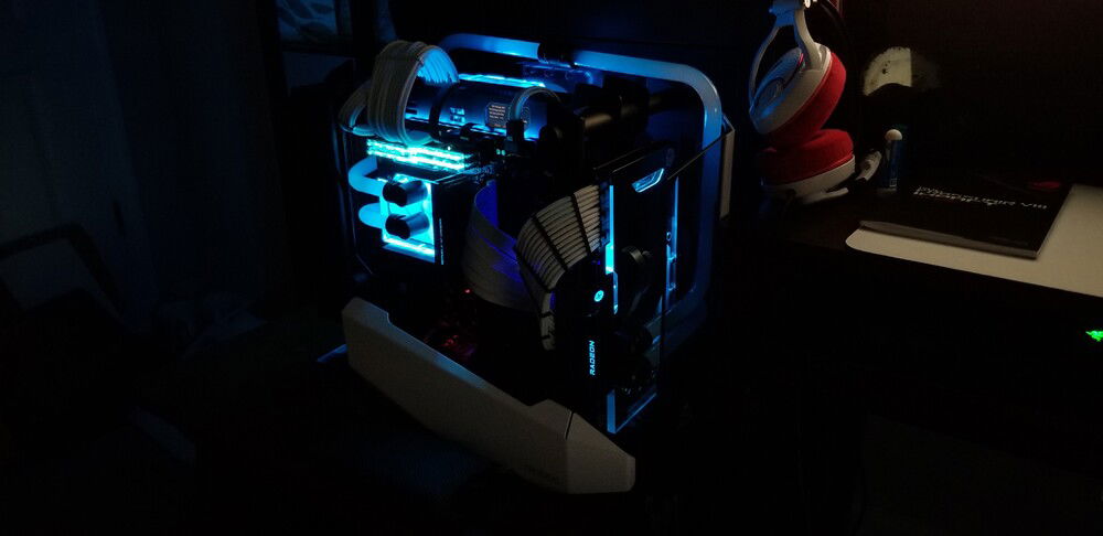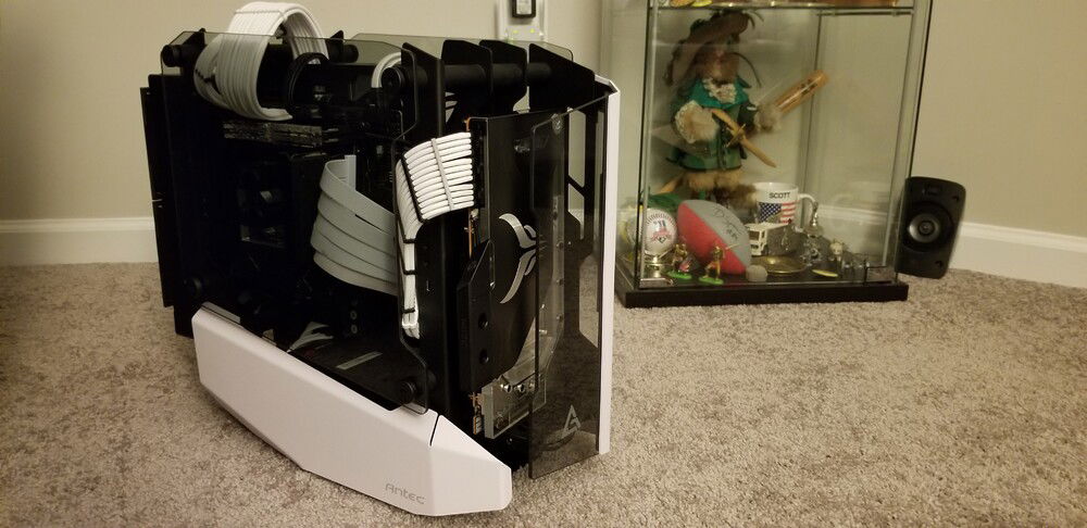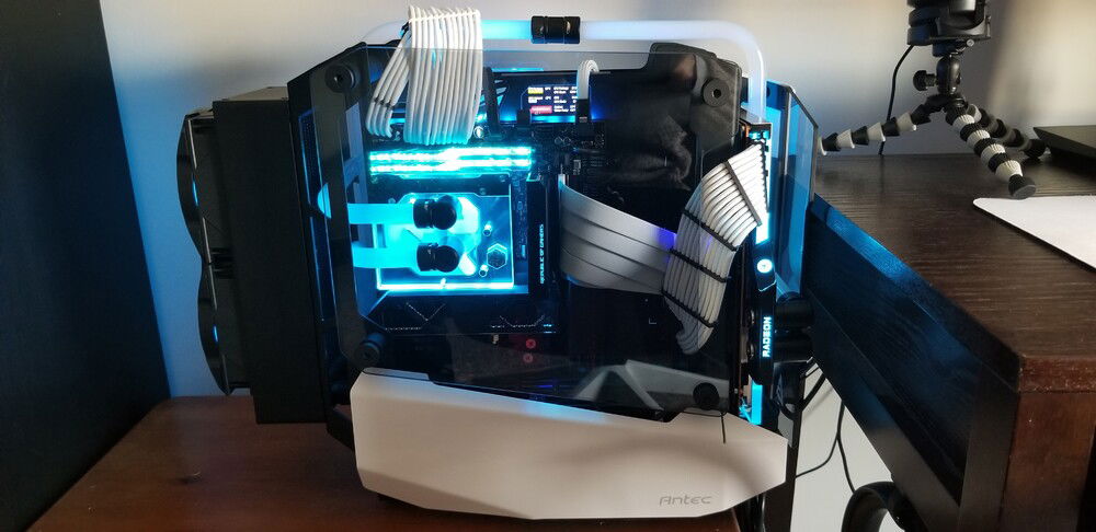 On the name: While the name sounds kind of cool, there really wasn't much creativity that went into it. I figured that the Antec Striker is black and white, and the components I was adding were black, white, or chromed (nickel-plated heatsinks and accents on the fittings), so the result is both that it is dark/black and light (white, chrome, and RGB). Ergo, "Darklight"!