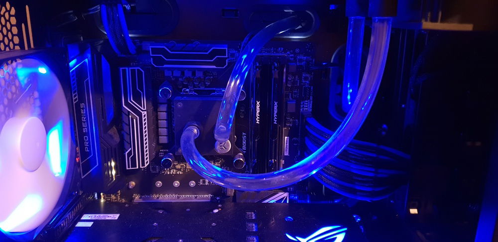 Phanteks Enthoo Primo Ultimate MSI Z270 SLI PLUS i7 7700k @ 4.9Ghz ( goes higher but Australia is hot ) Asus Strix GTX 1080 GPU Clock @1911Mhz, Mem Clock @22020 16Gb Kingston Hyper X FURY 2666 15.17.17.35 EK Flud Gaming A240 water cooling kit ( sadly aluminium will be swapping out when new CPU happens ) KingDian S280 240Gb Boot Drive Samsung 860 Evo 1Tb Seagate Barracuda 2Tb HDD Seagate Barracuda 1Tb HDD Thermaltake Smart Pro 750w RGB 8 Phanteks PH-F140SP Blue LED fans