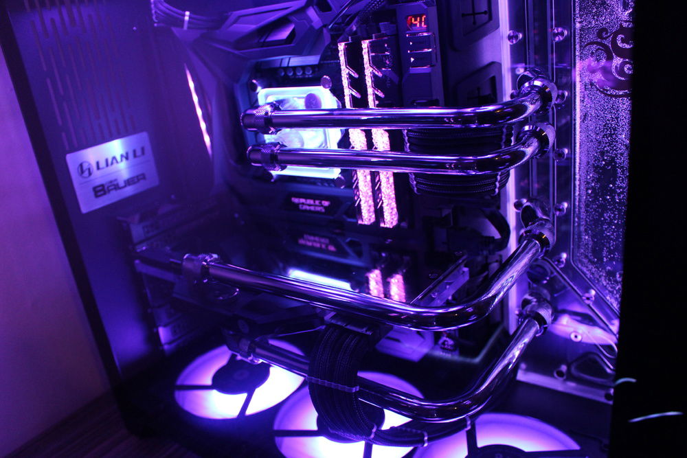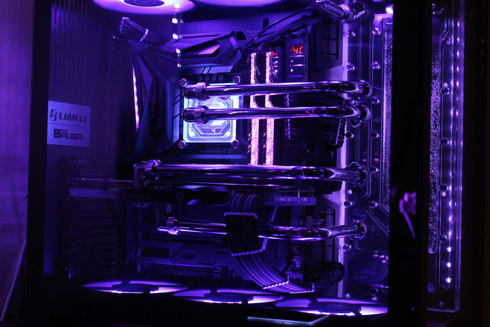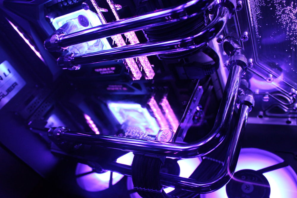 I used RGB fans to give options of different lighting effects, and settled for the subtle deep purple which in my opinion bought out the chrome tubes, fittings and polished nickel brilliantly. The ROG terminal to add an aura behind the PG348Q monitor was a great addition and recommend highly.
