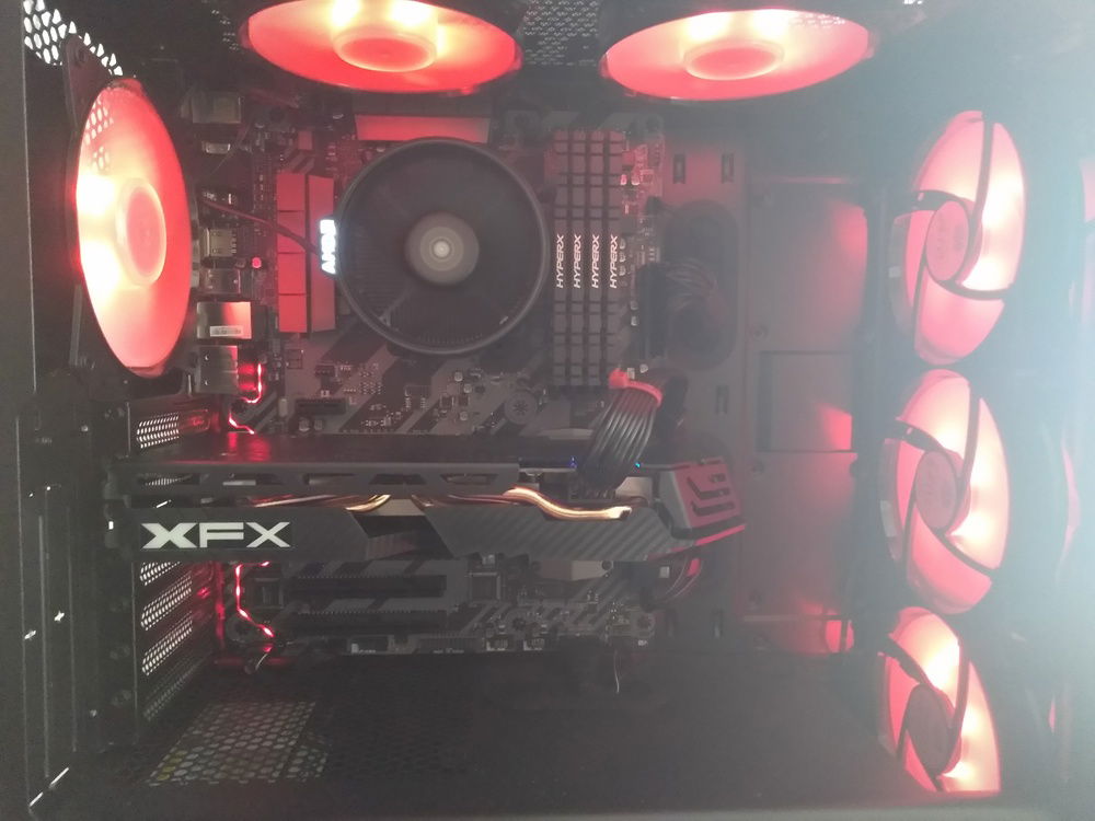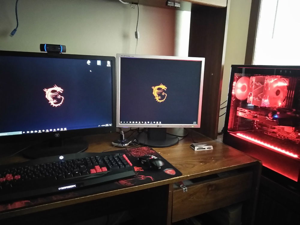 Recently added red LED strips, 2nd monitor, and Deep Cool Gamaxx 400 cooler
