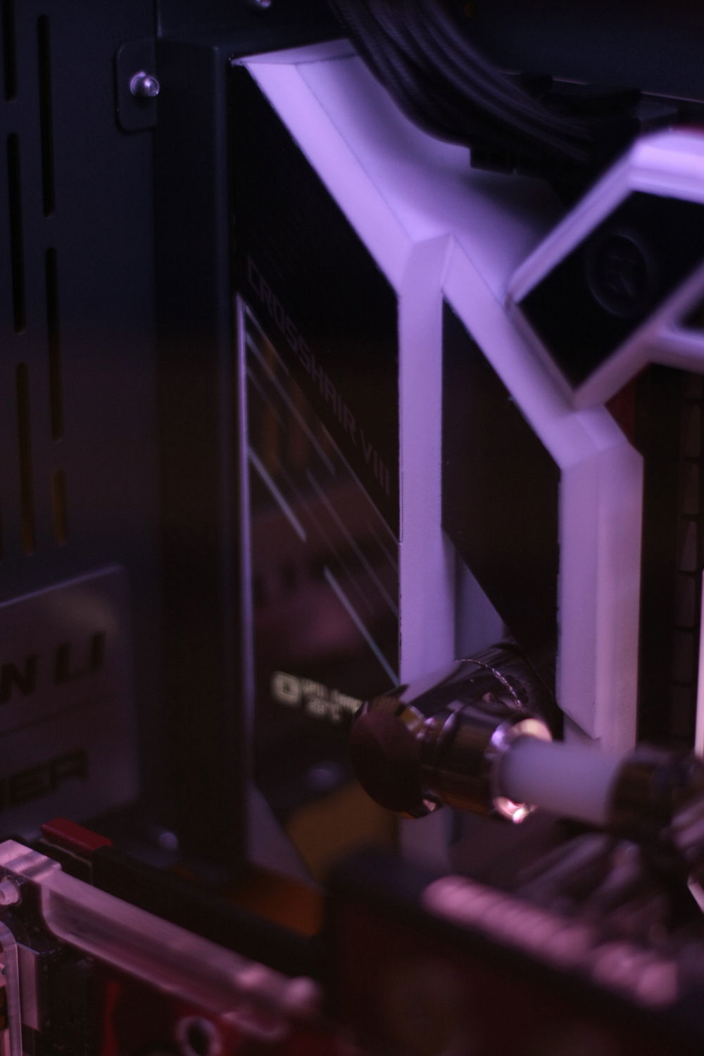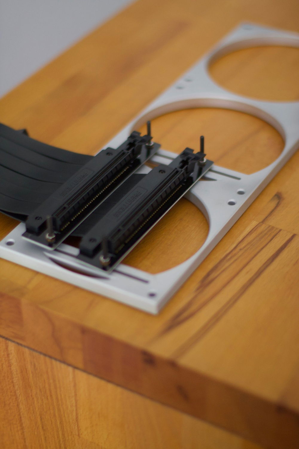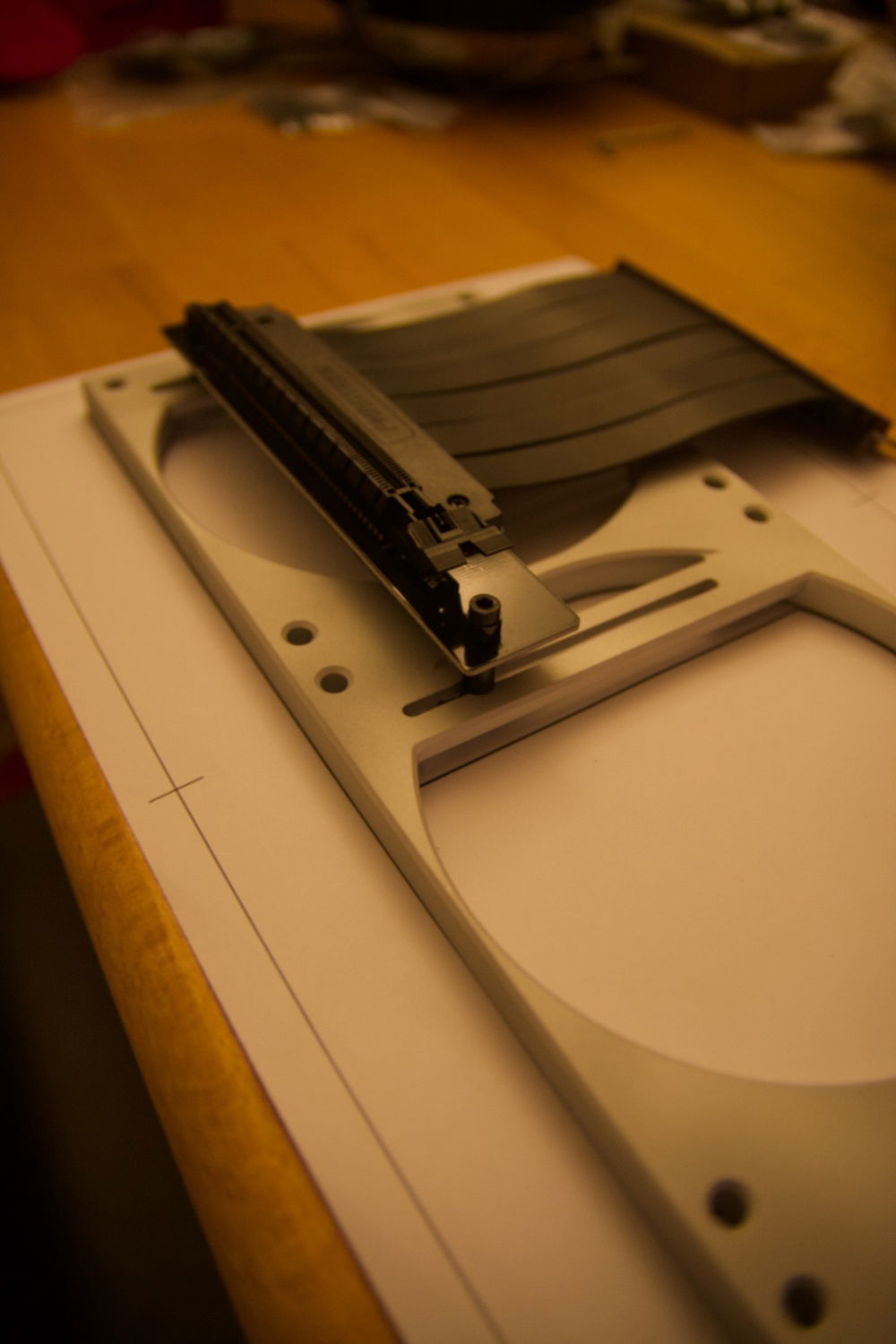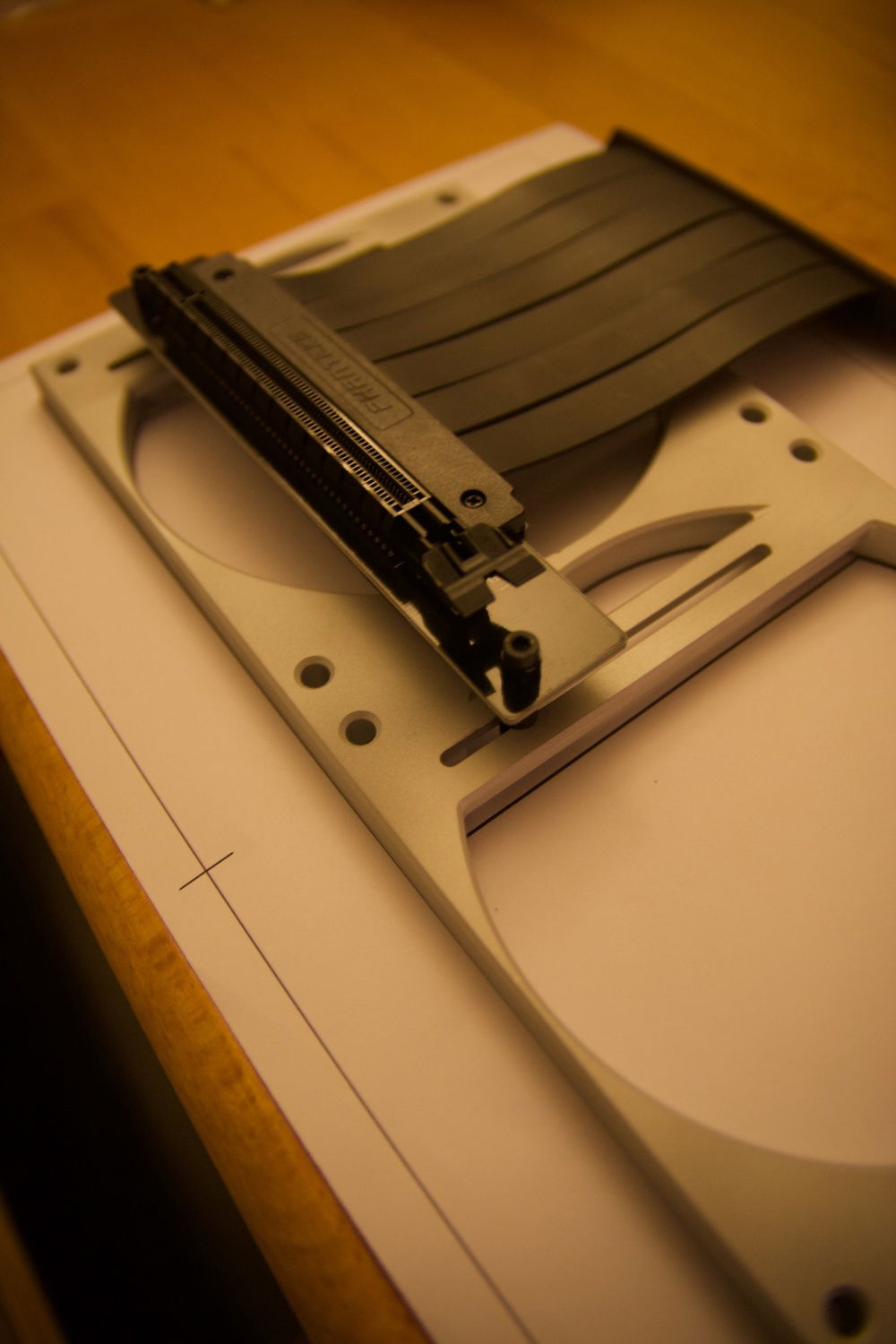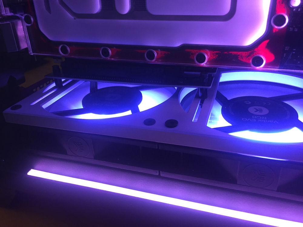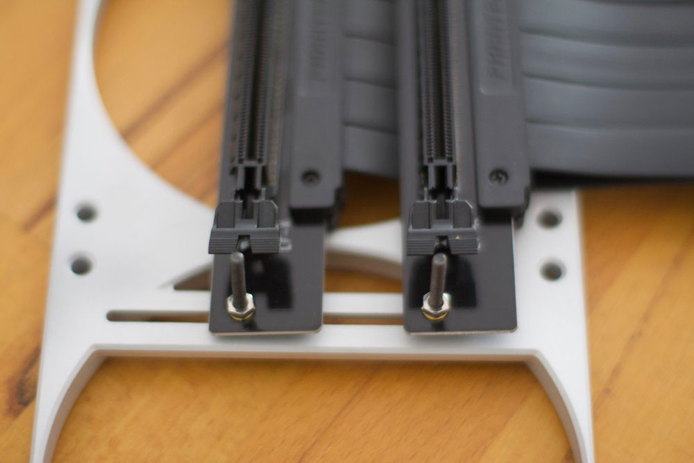 To remediate this I designed a bracket that mounts to my radiator and fans, and is able to support the vertically PCI-E-bracket.