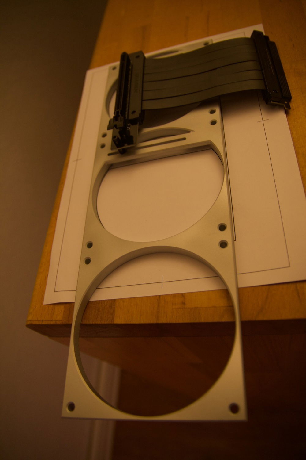 My initial plan was to 3D-print this bracket, but after considering the form and forces that will be presented by the cards, I reconsidered and switched to milled aluminium.