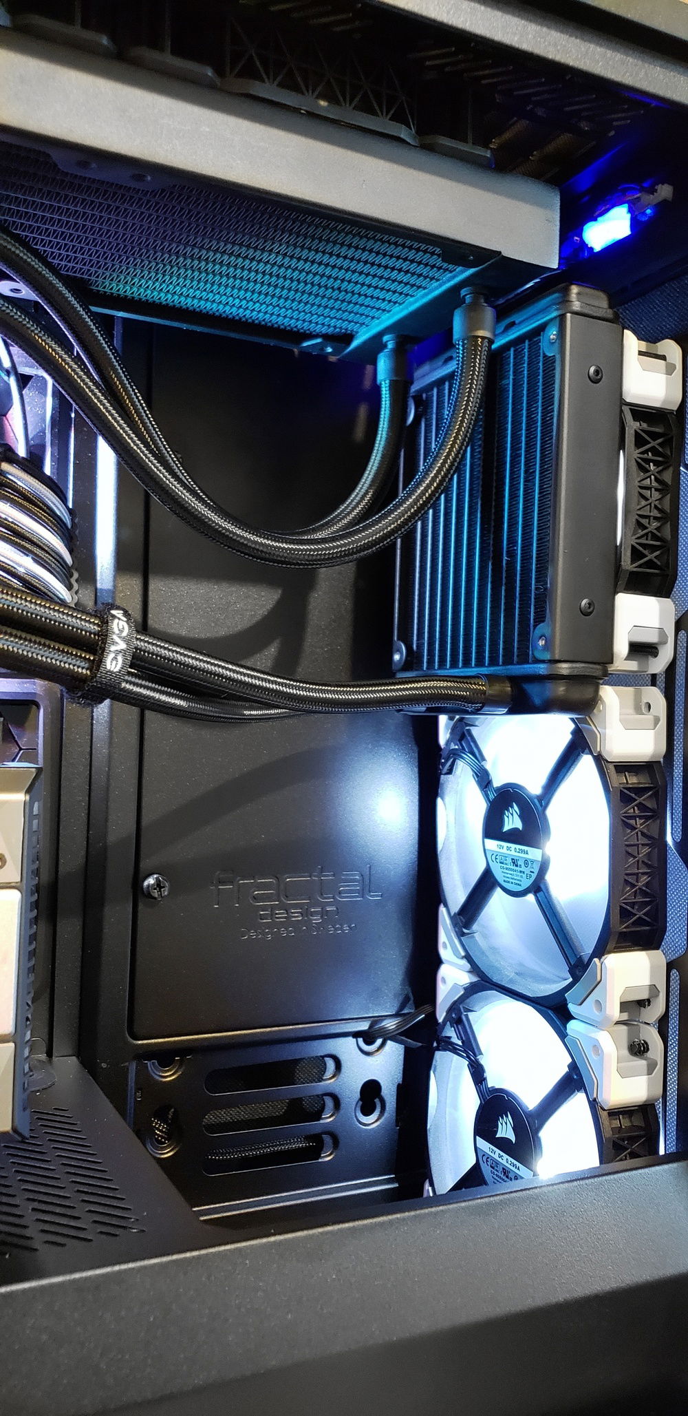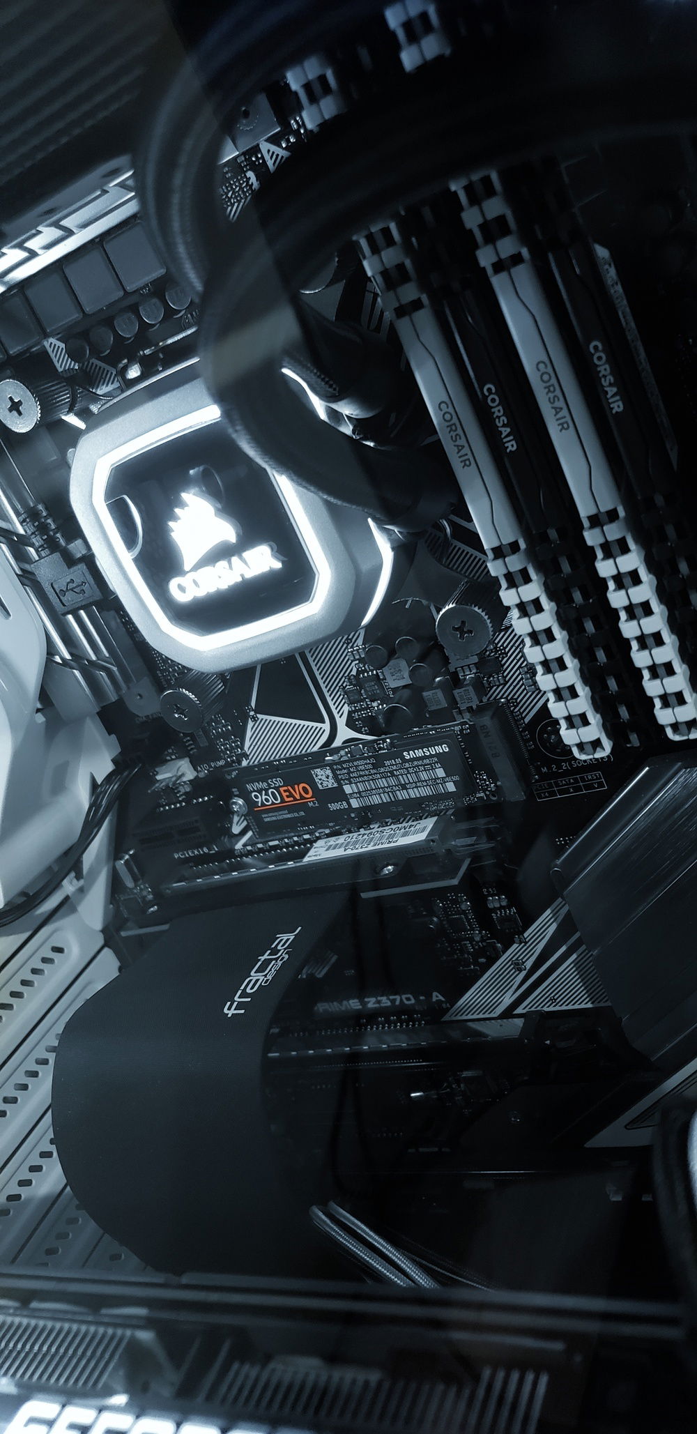 Intel i7-8086K overclocked 5.1GHz on all cores, water cooled by Corsair Hydro H150i RGB (360mm radiator)