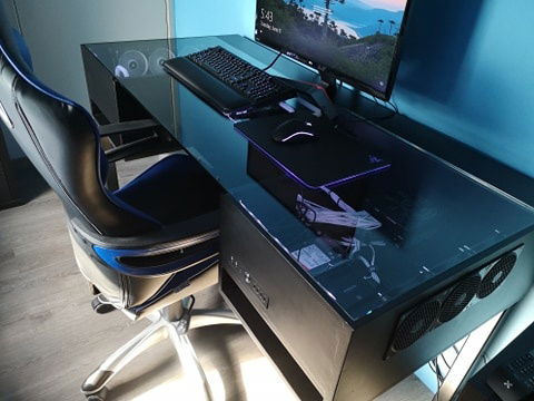 This is a project that I made for school, I have spent a whole year on it with making the 3D-design of the case and buying all the parts I needed. I also worked togheter with other people to make the steel legs of the desk. The desk itself is made from wood(MDF) and it took around 16 hours to make it. The top of the desk is made from glass so you can easily see the interior of the PC. It was a lot of hard work but I am happy with the result, hope that you guys like it.