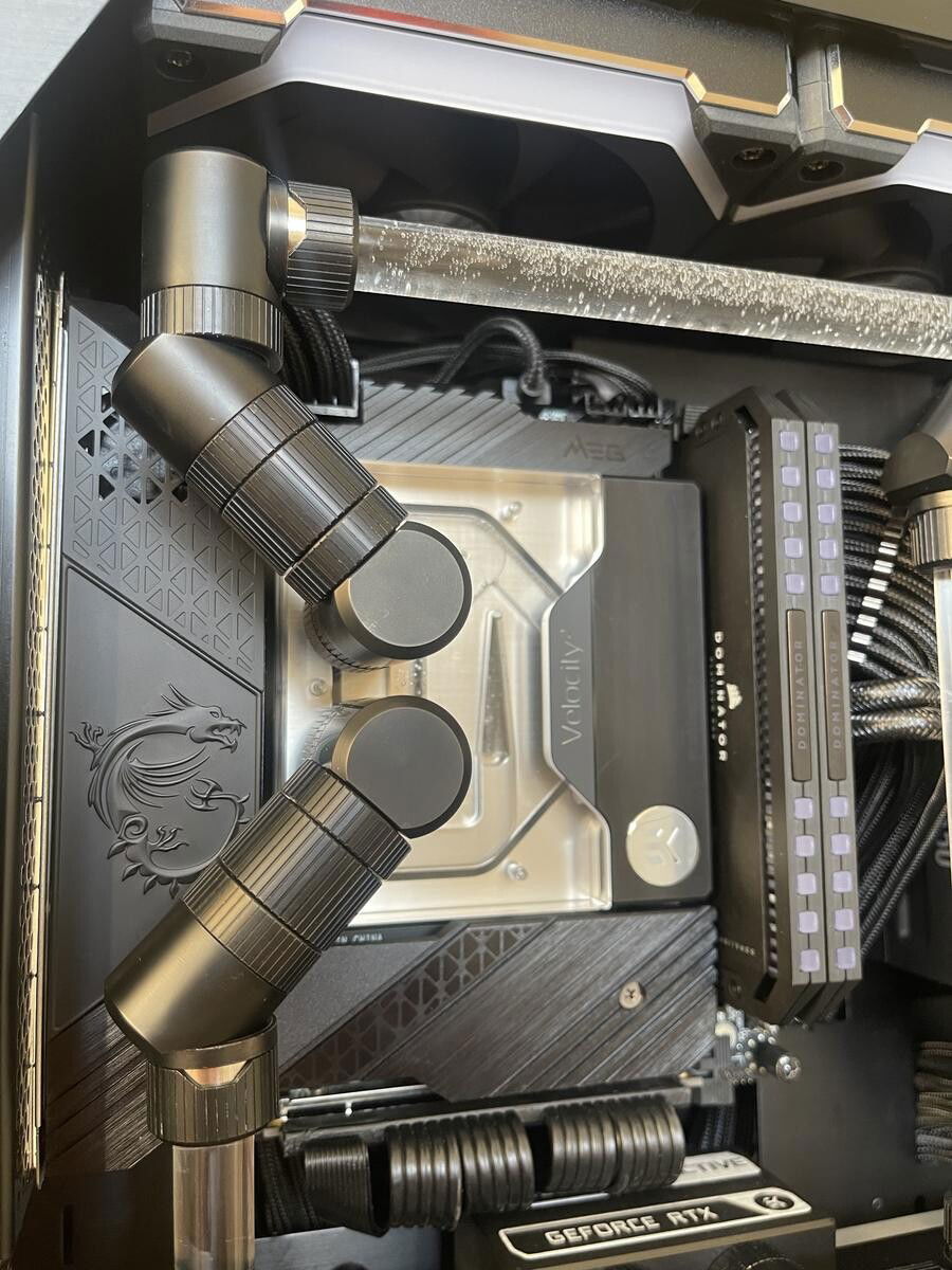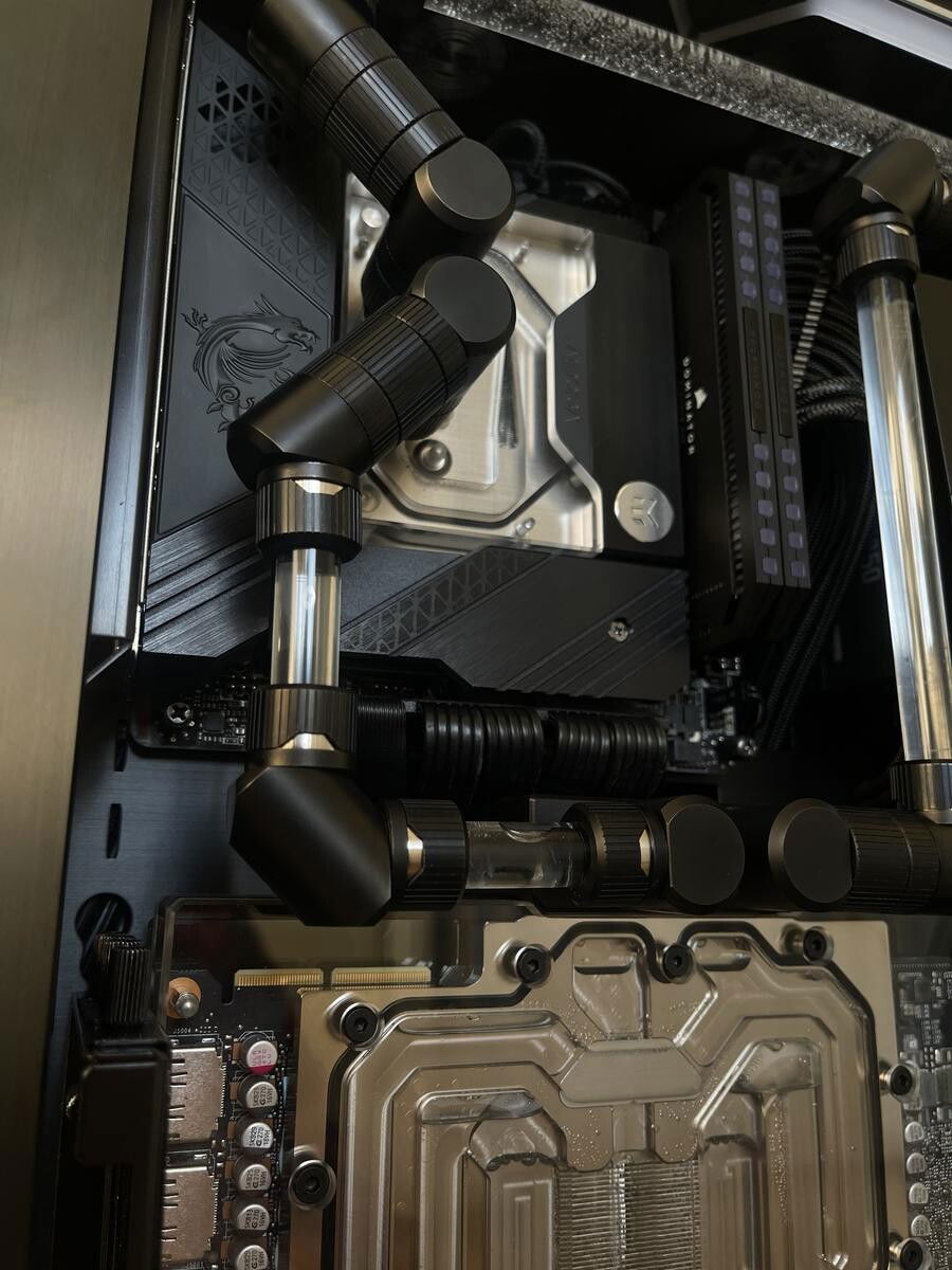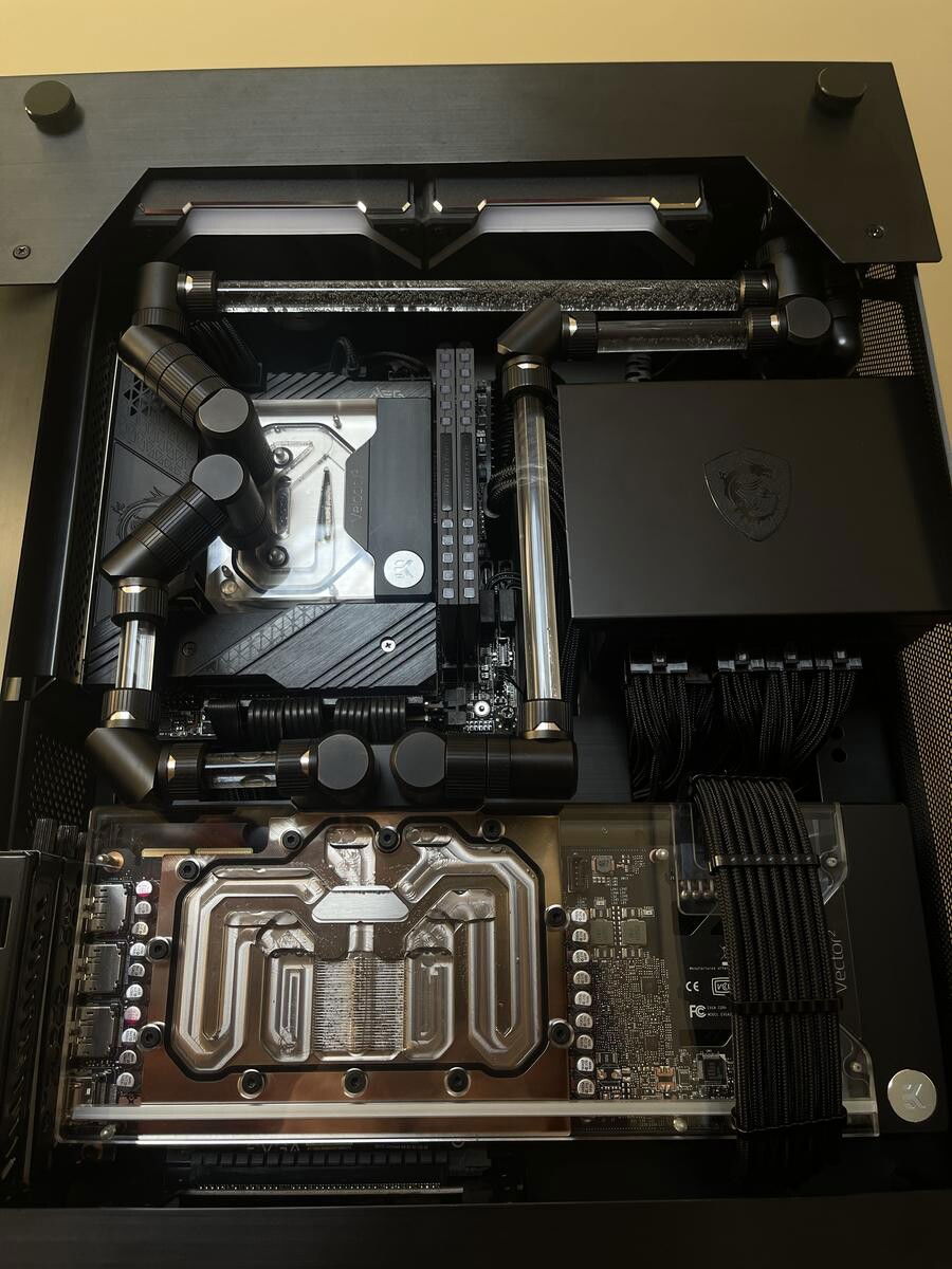My Build for my client. based on my research for the allusive all-in-one radiator they led me to the Granzon radiator-pump combo. A brand I never heard of, but I had no choice because there is apparently a minimal selection of radiator-pump combo units on the market. After I discovered the radiator-pump unit, the rest of the build basically fell into place. I found the best-looking, all-black, components on the market, filled this system up with tons of storage and memory, and slapped them all together to get what I can say is a pretty awesome-looking PC that I am very proud of.