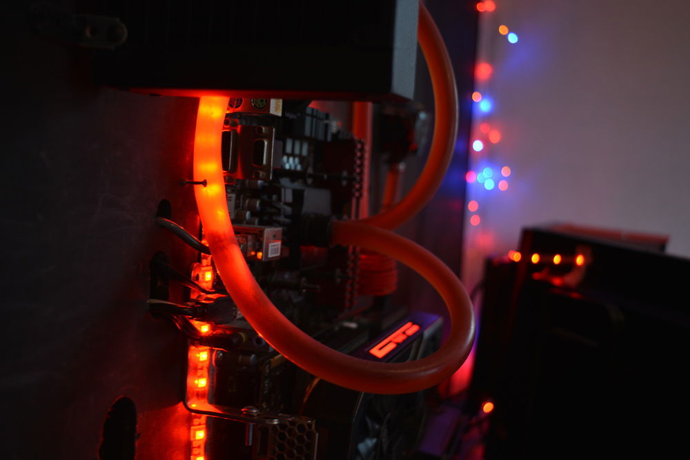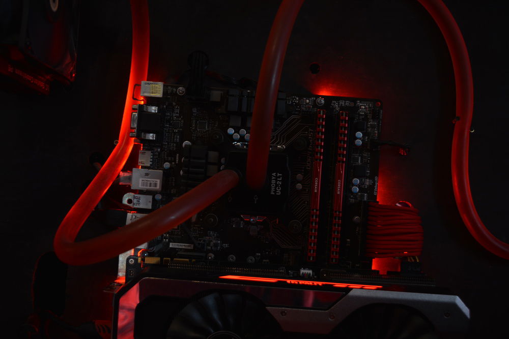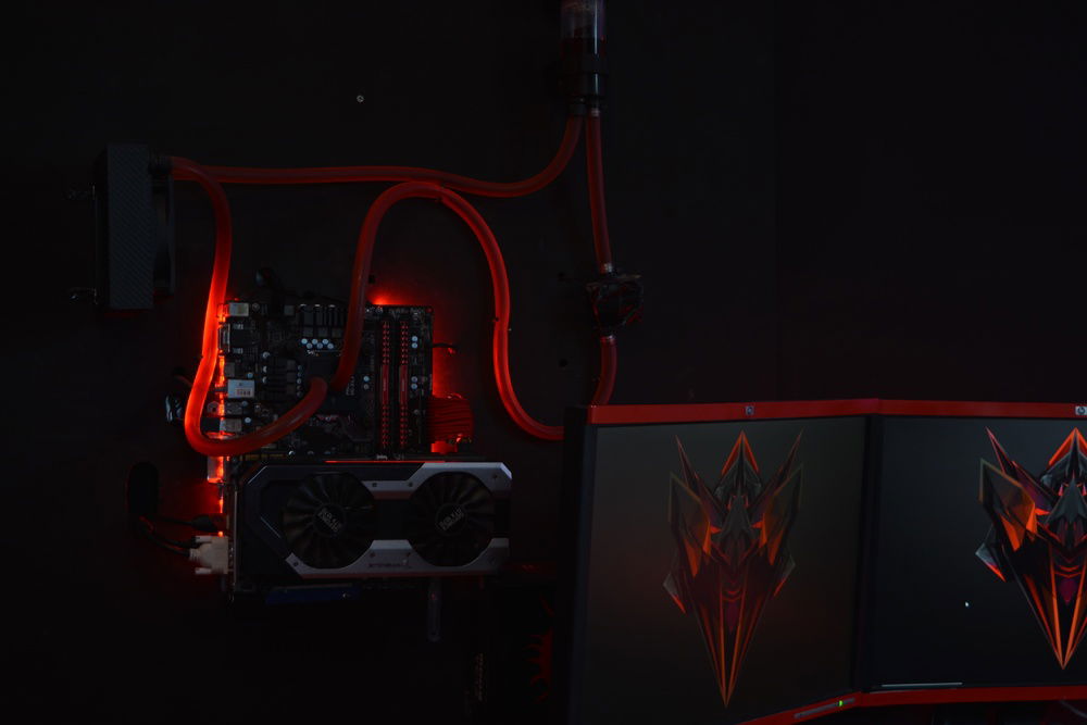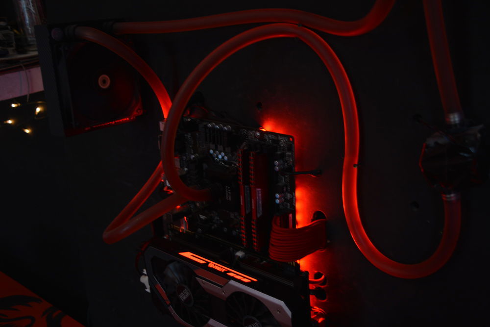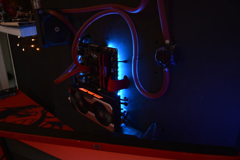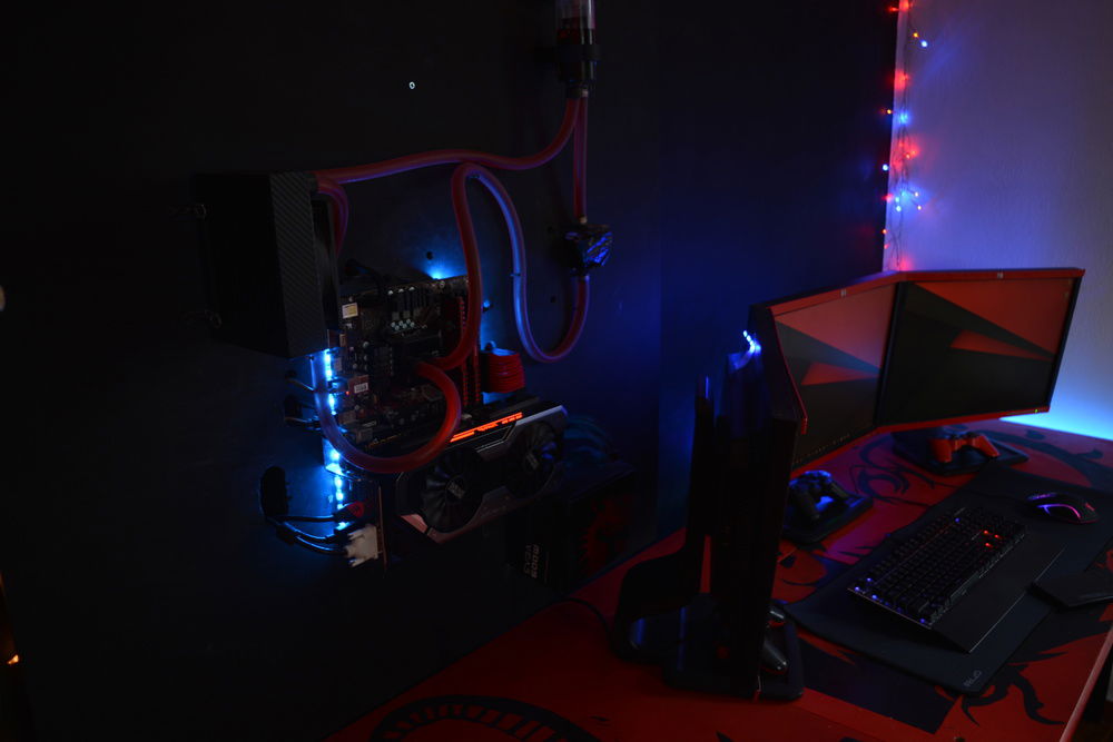 This is my first gaming pc build! The case is custom built and wall mounted.